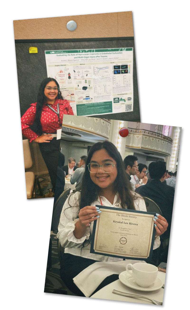 Krystal Rivera is a rising third-year Ph.D. candidate in the graduate biomedical science program at UAB. She works under the guidance of Jillian Richter, Ph.D., associate professor in the Division of Trauma and Acute Care Surgery, Department of Surgery. With approximately two years remaining in her program, she is on track to complete her doctorate in a total of four years.