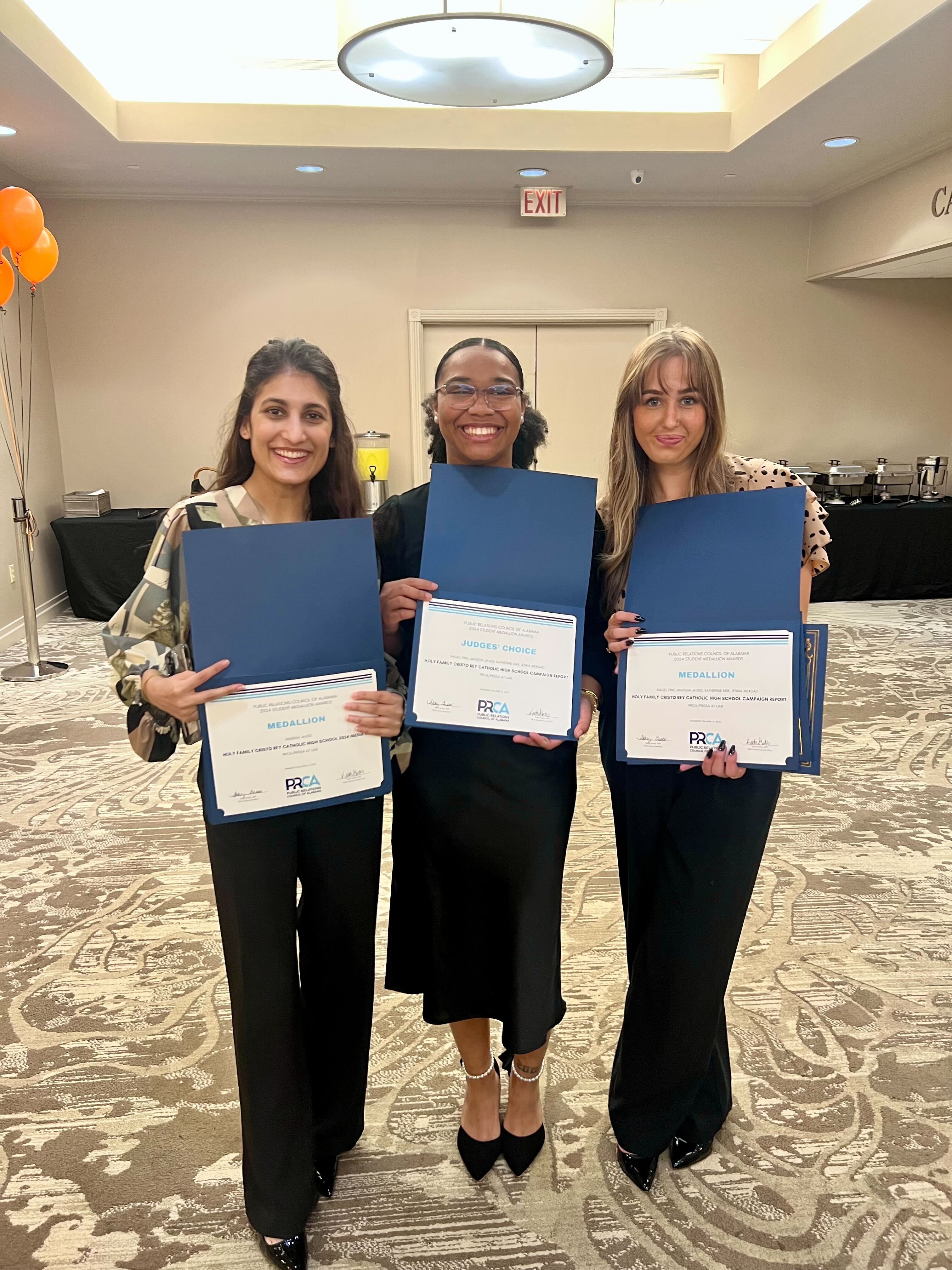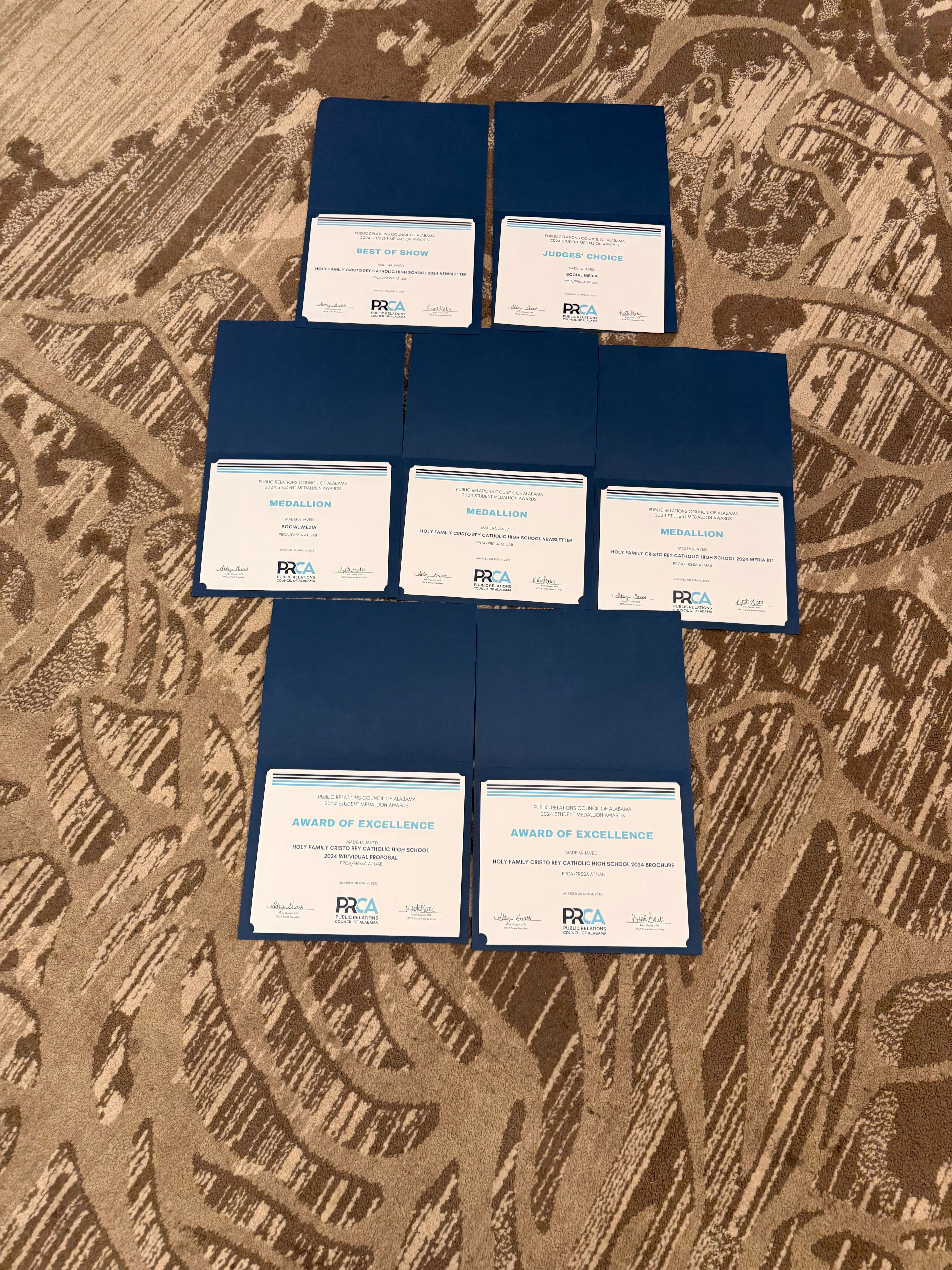 Javed received seven individual awards for her senior public relations campaign for Holy Family Cristo Rey Catholic High School and social media work with the PRCA/PRSSA at UAB, including: