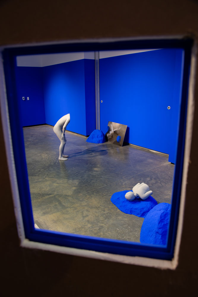 Atlanta-based artist, Christina A. West, creates immersive, site-specific installations that utilize figurative sculptures and the alteration of space to create psychologically charged environments. West’s figures, which the artist distorts through an adjustment of scale and proportion, are found sitting, standing, kneeling, and crawling. The monochromatic figures, and their relationship to the fabricated interiors in which they reside, provoke subtle feelings of visual and spatial discomfort.