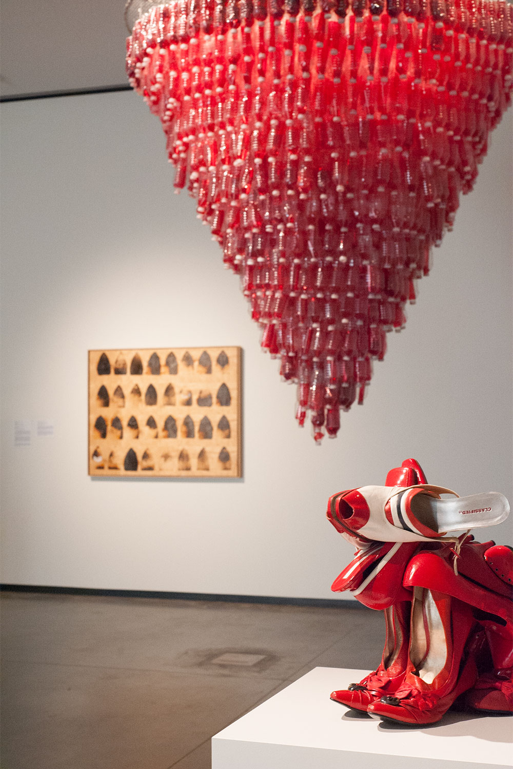 Showcasing over fifteen works created between 1996 and 2015, the exhibition investigates the artist’s transformation of everyday objects, ready-mades, and throwaways into works of multi-layered autobiographical, art-historical, and socio-political meaning. Featuring a selection of works drawn from Birmingham collections, the exhibition also includes the artist’s large-scale work Red Spirit Light, a suspended chandelier-like form comprised of red water bottles. Red Spirit Light evokes the psychological and spiritual force of light and the color red, while also commenting on our throwaway culture of ever-proliferating plastic discards.