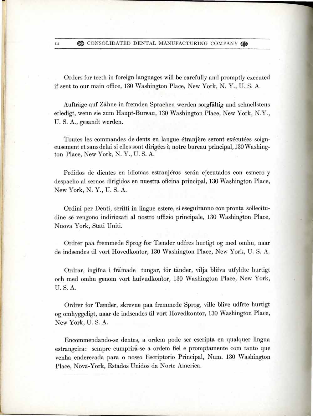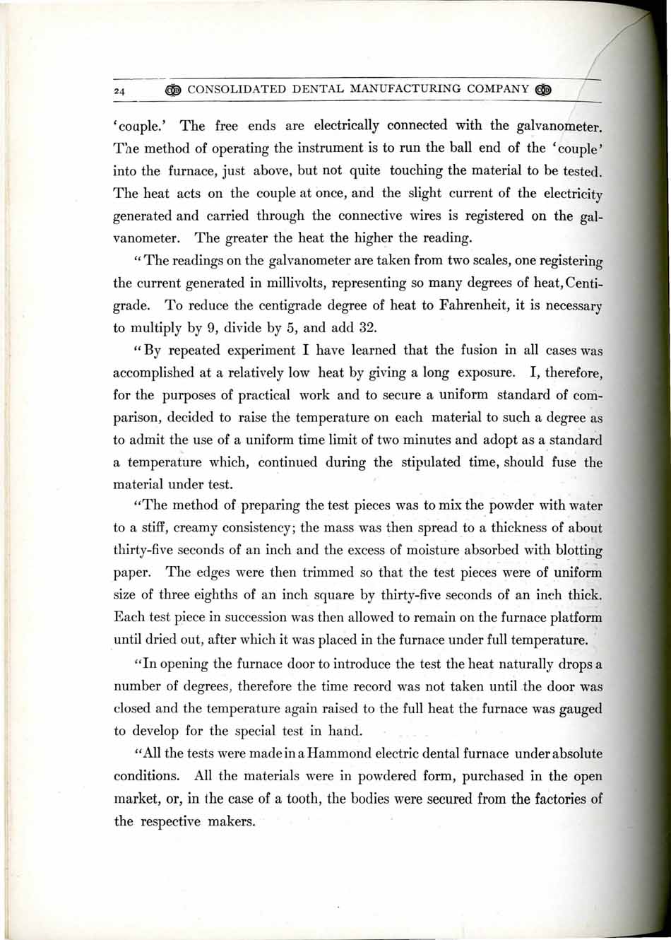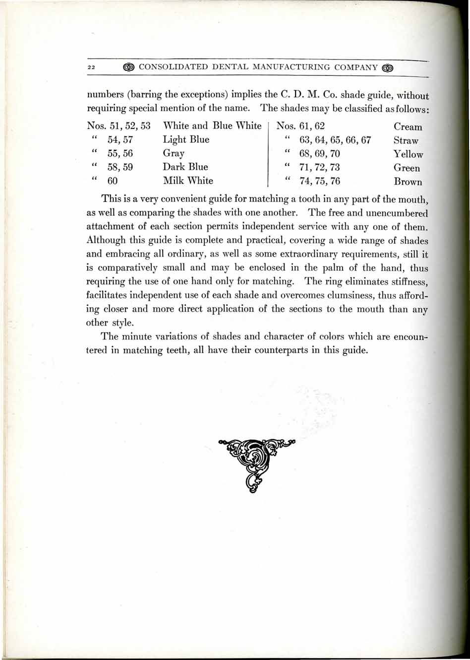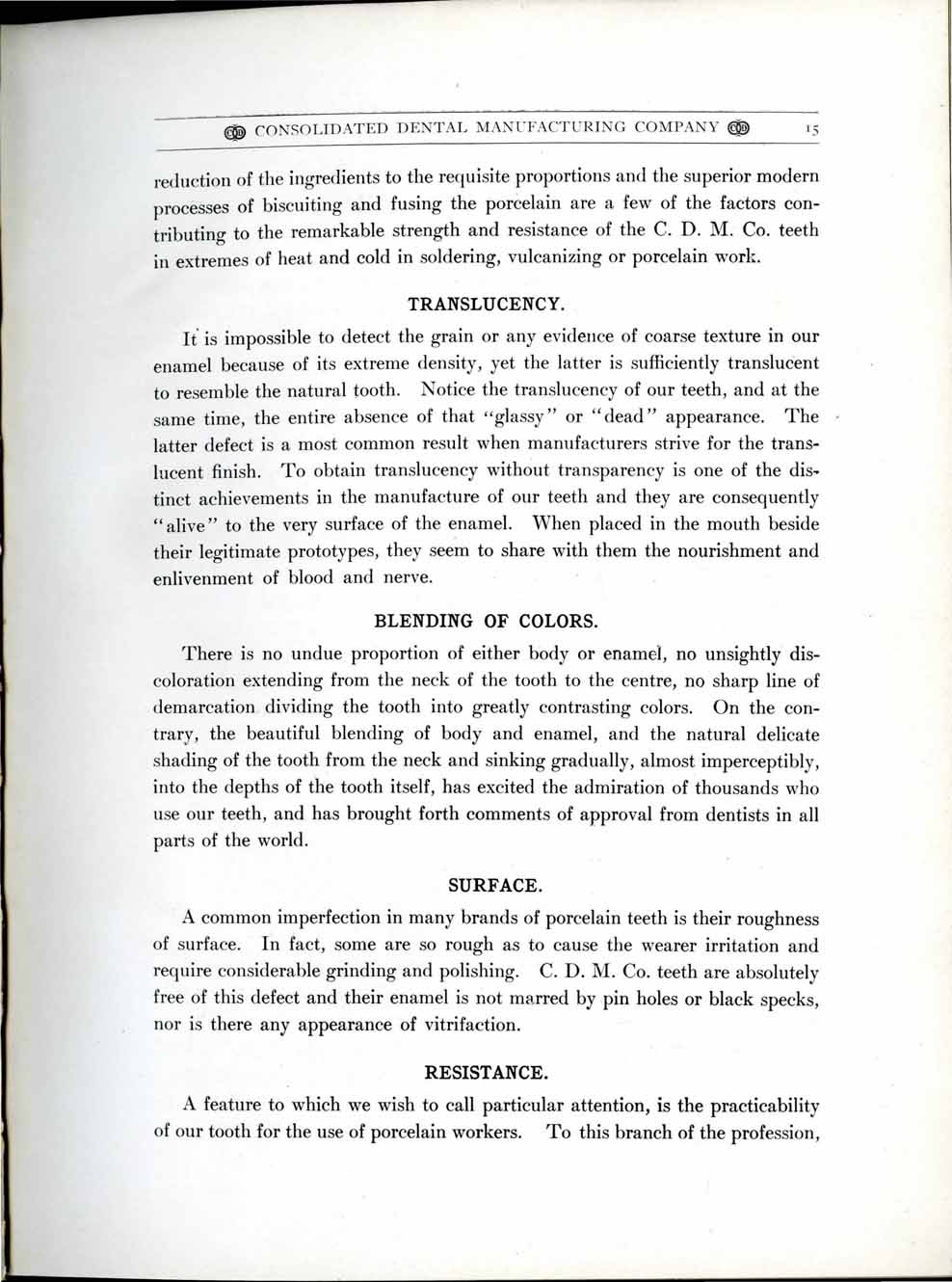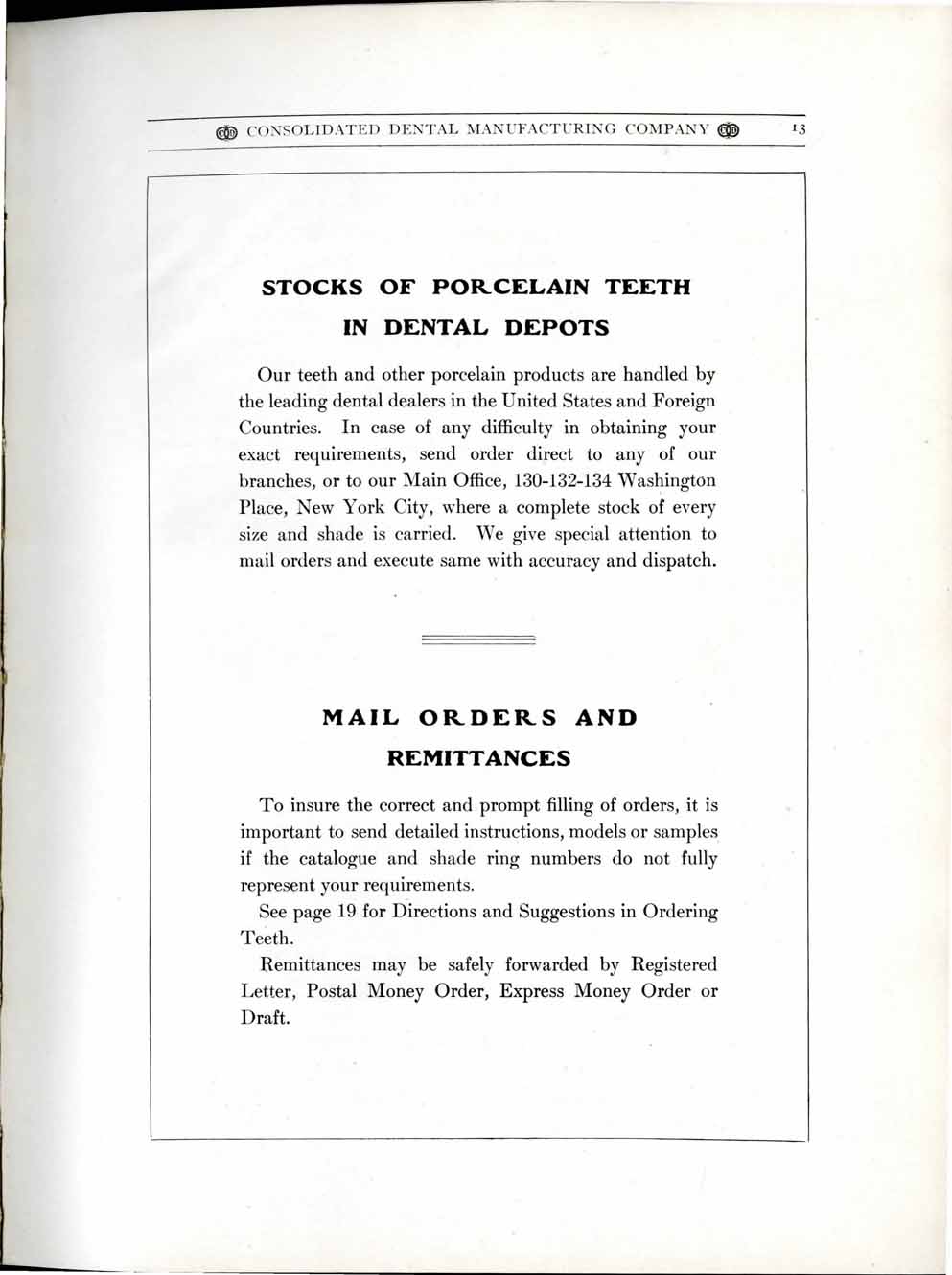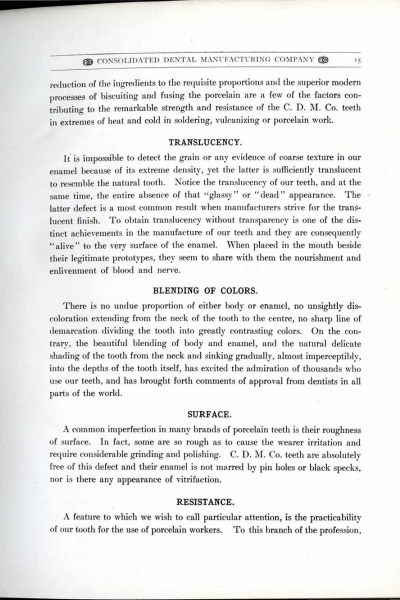 1904 catalogue of artificial teeth and Davis crowns from Consolidated Dental Manufacturing Co., including drawings, detailed descriptions, and price lists.