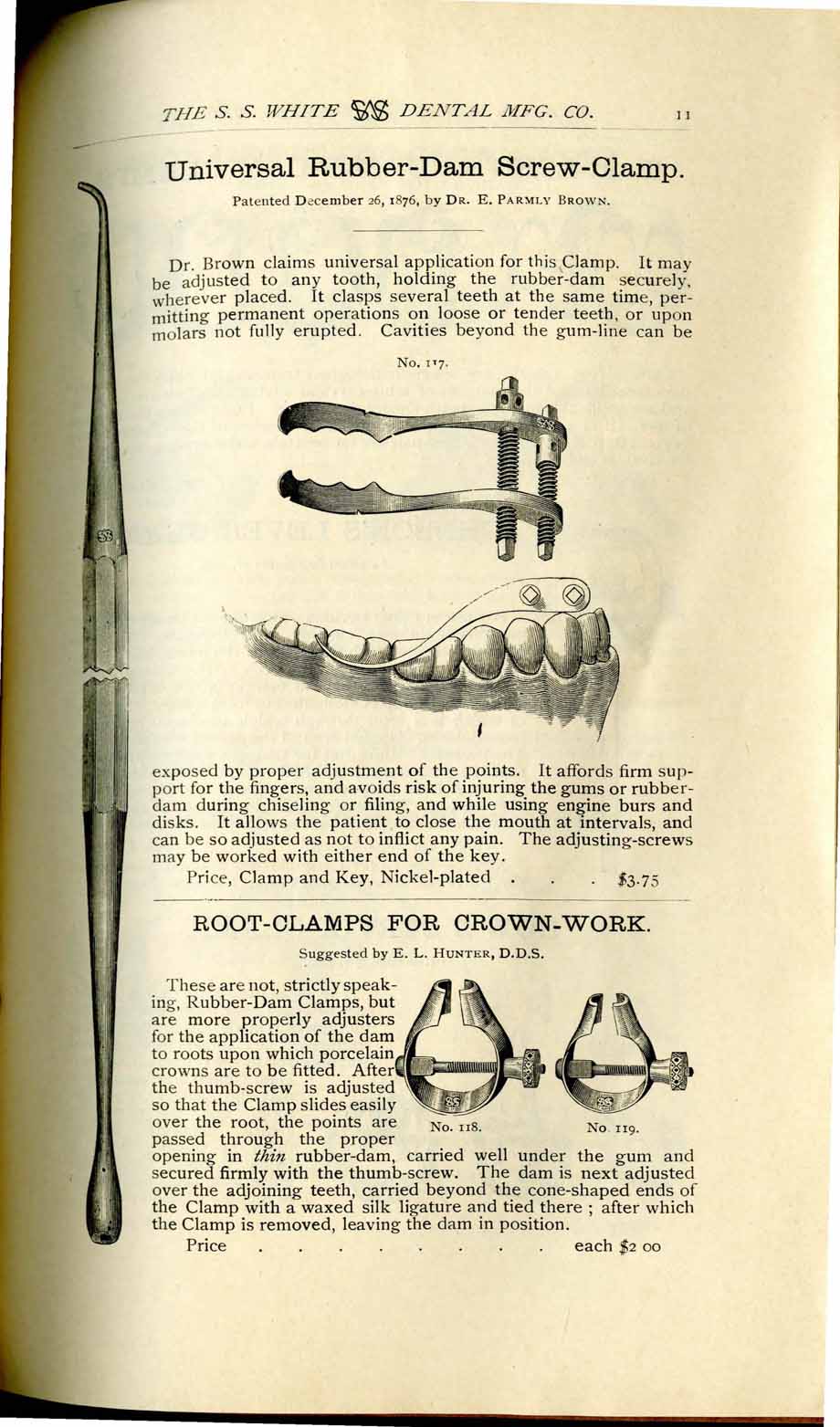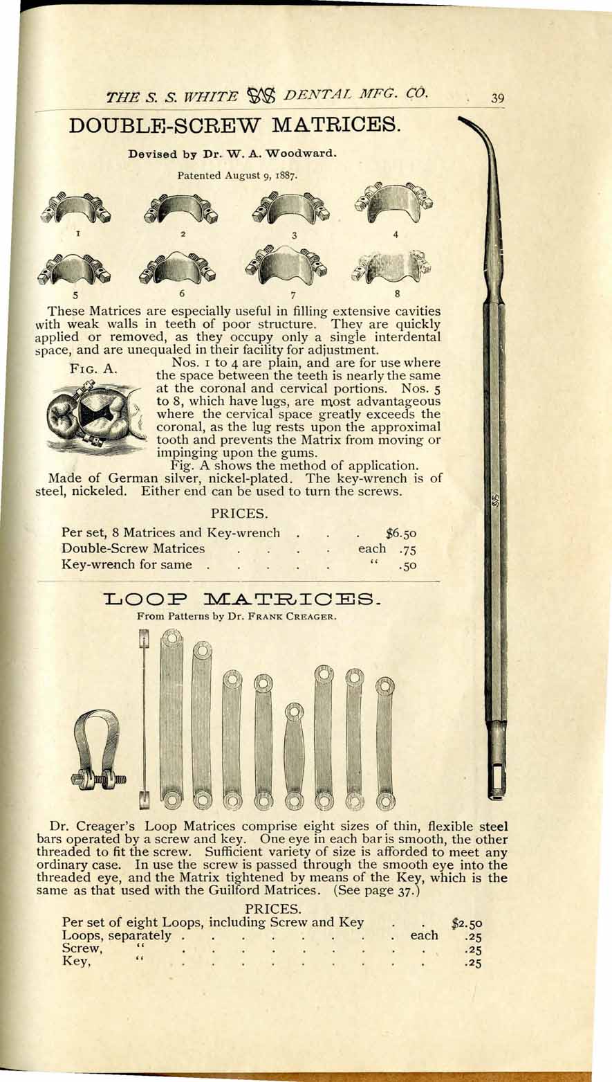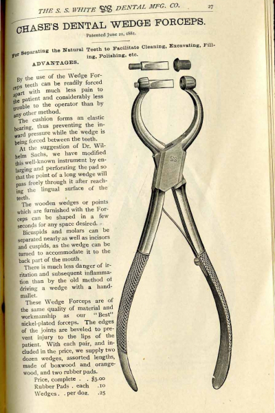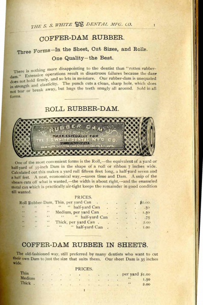 1894 catalog of dental equipment from S.S. White Dental Mfg. Co., including drawings, descriptions, and prices.