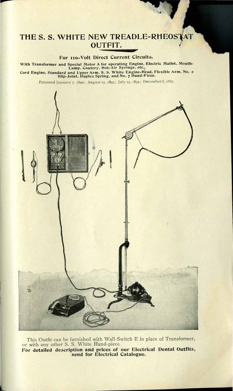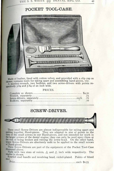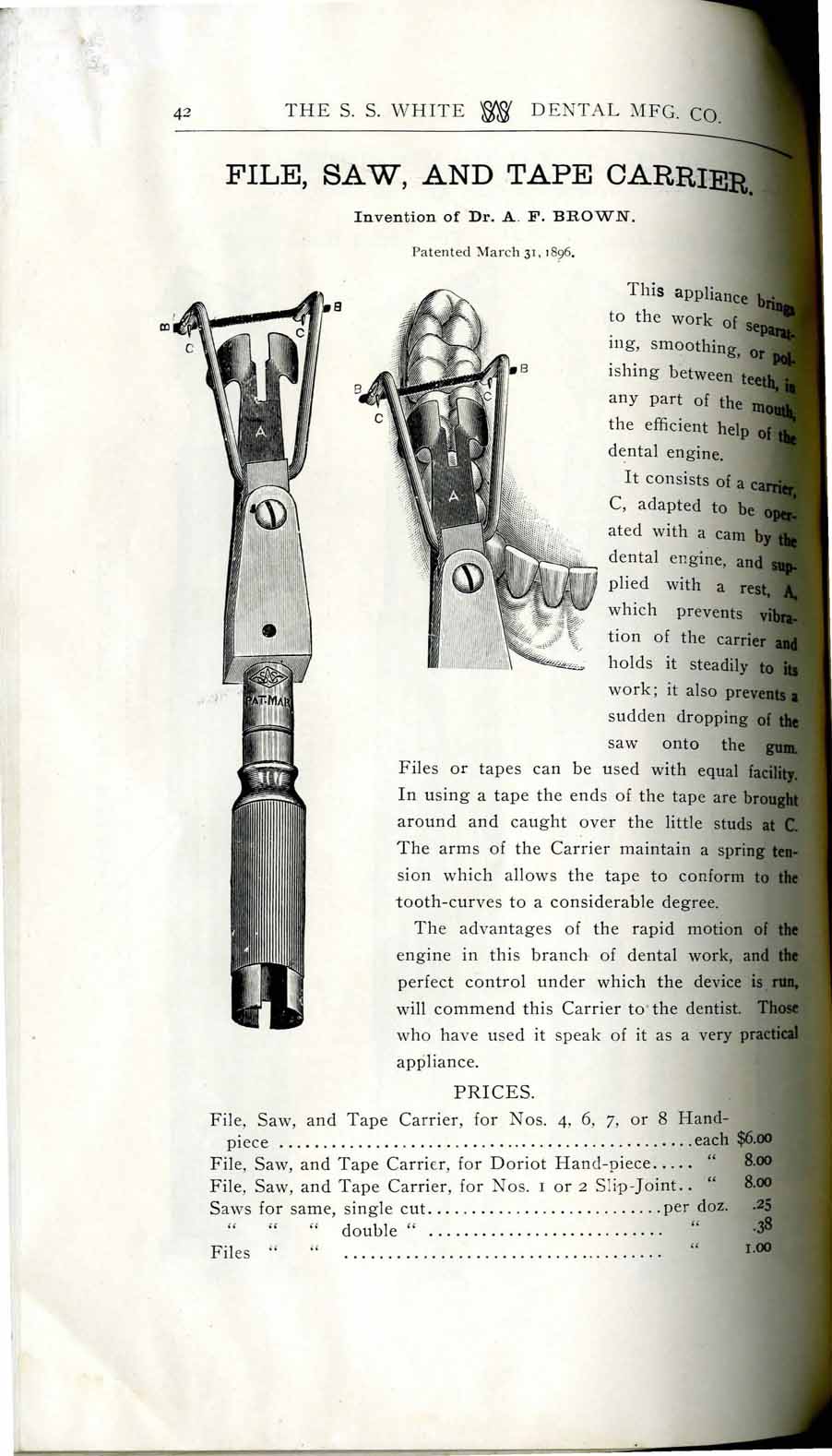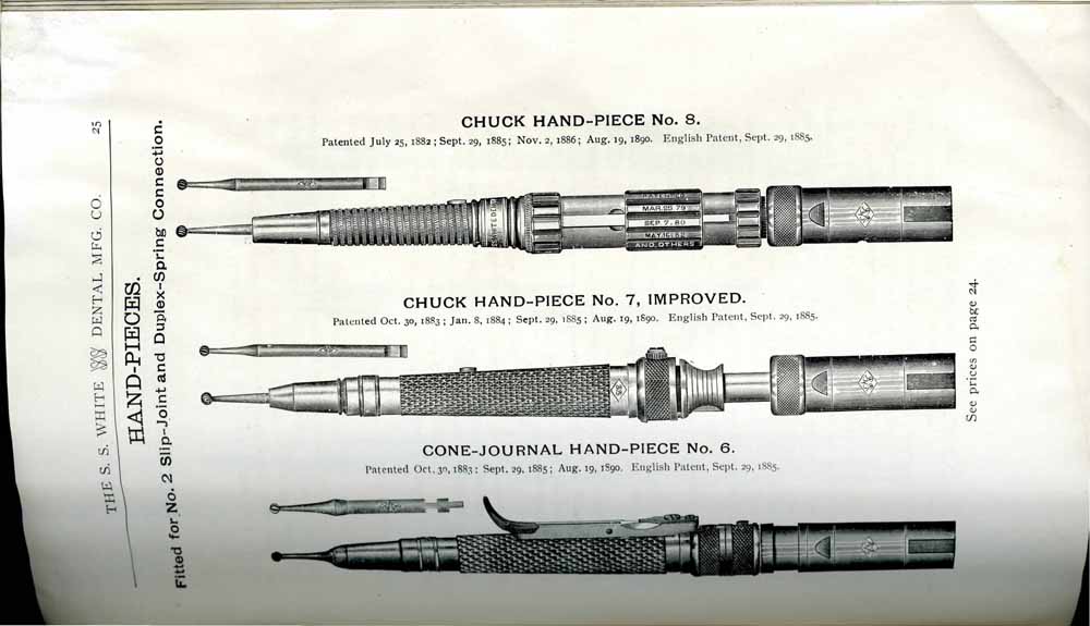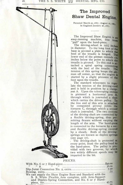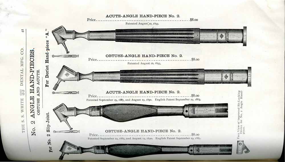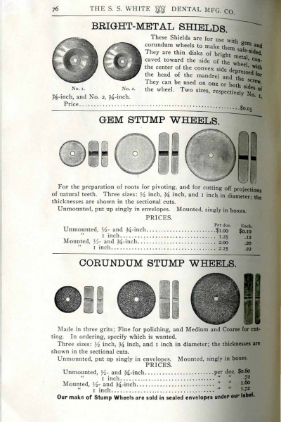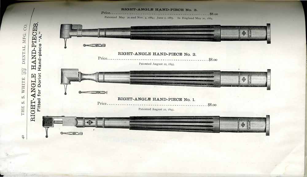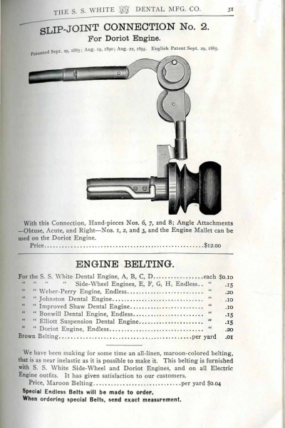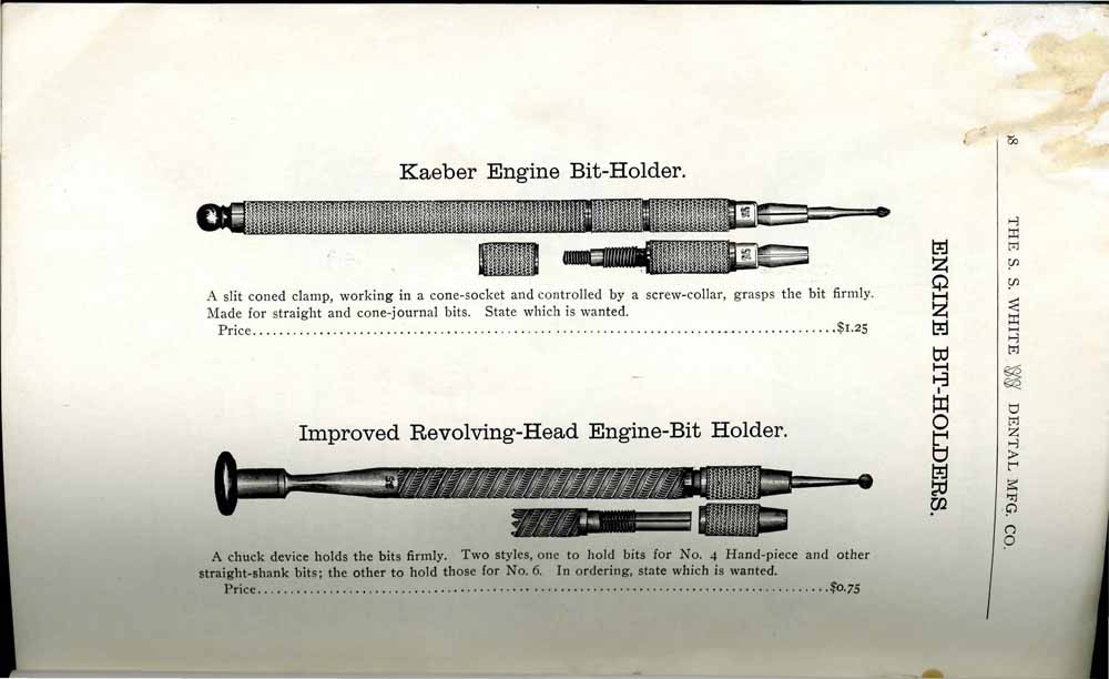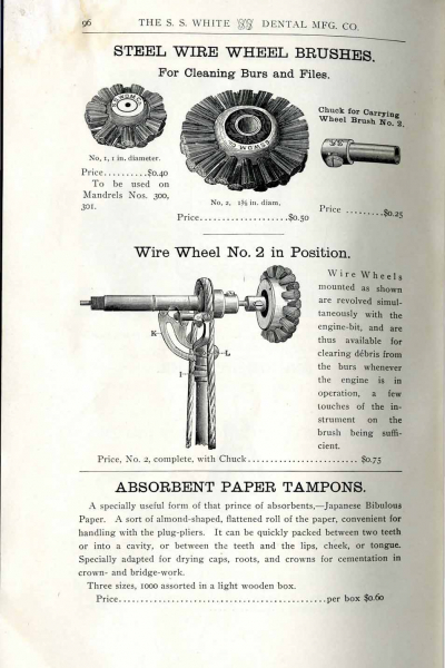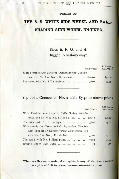 1898 catalog of dental equipment from S. S. White Dental Mfg. Co., including some photos, drawings, detailed descriptions, and prices.