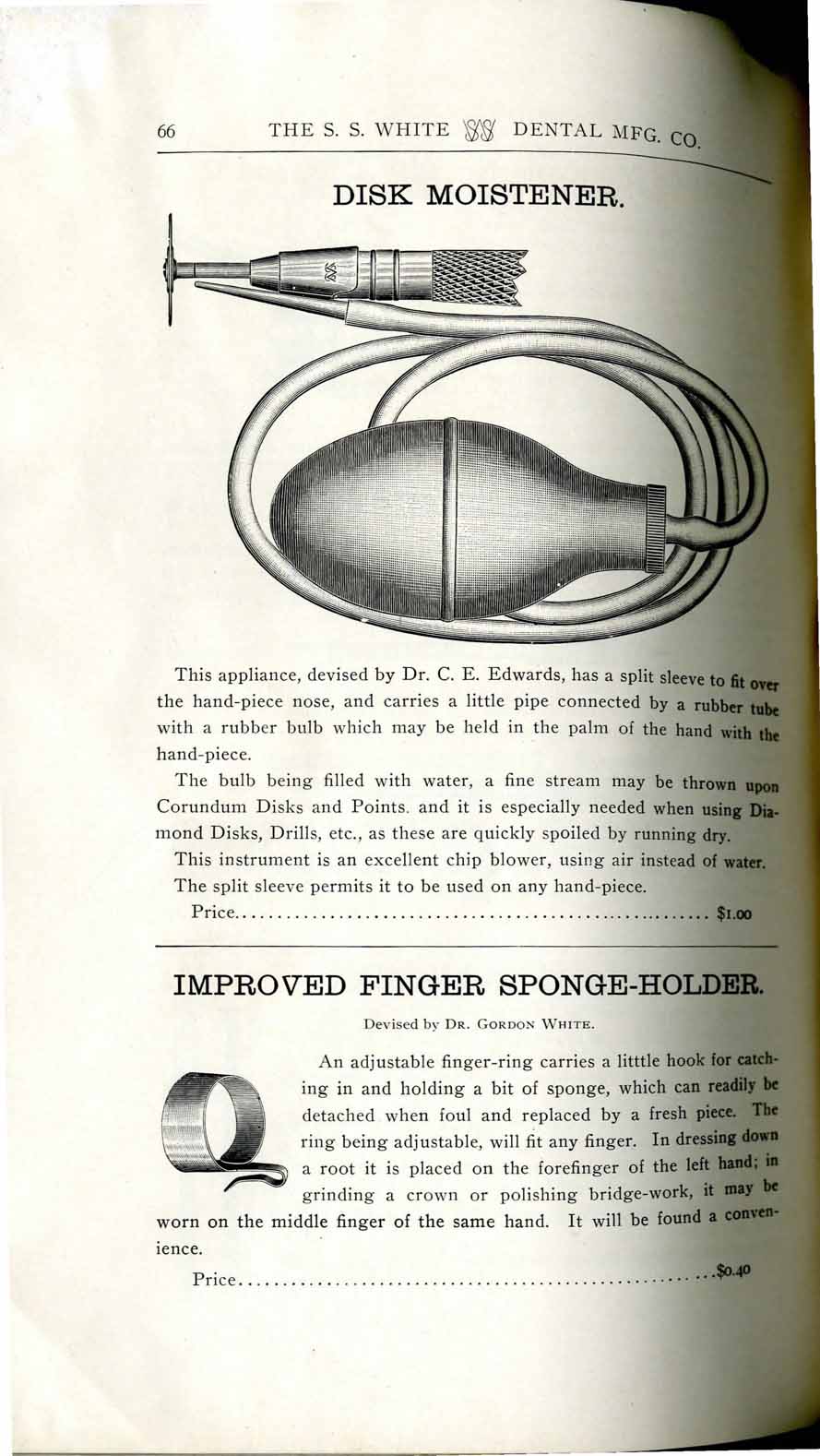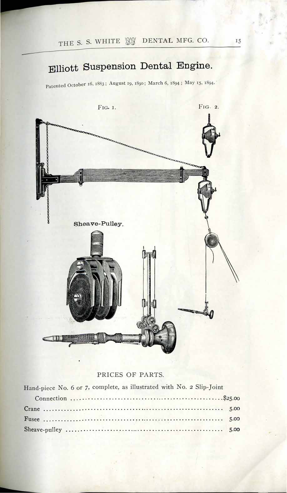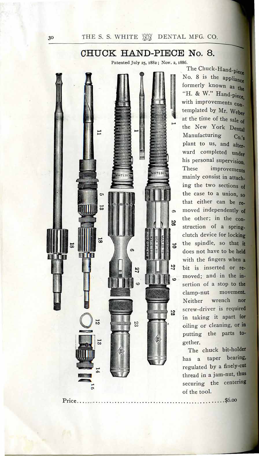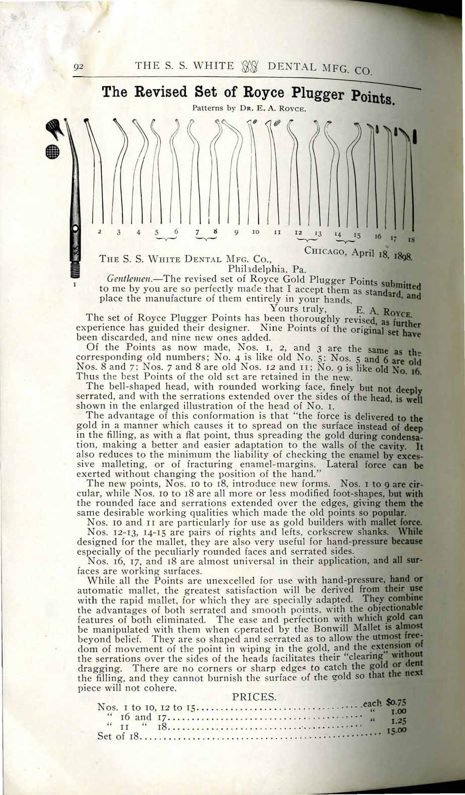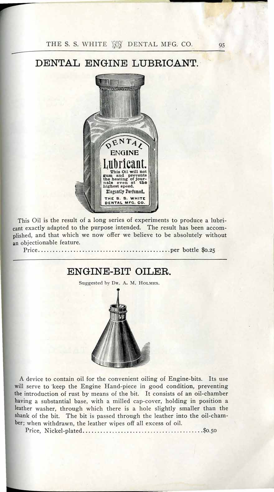 1898 catalog of dental equipment from S. S. White Dental Mfg. Co., including some photos, drawings, detailed descriptions, and prices.