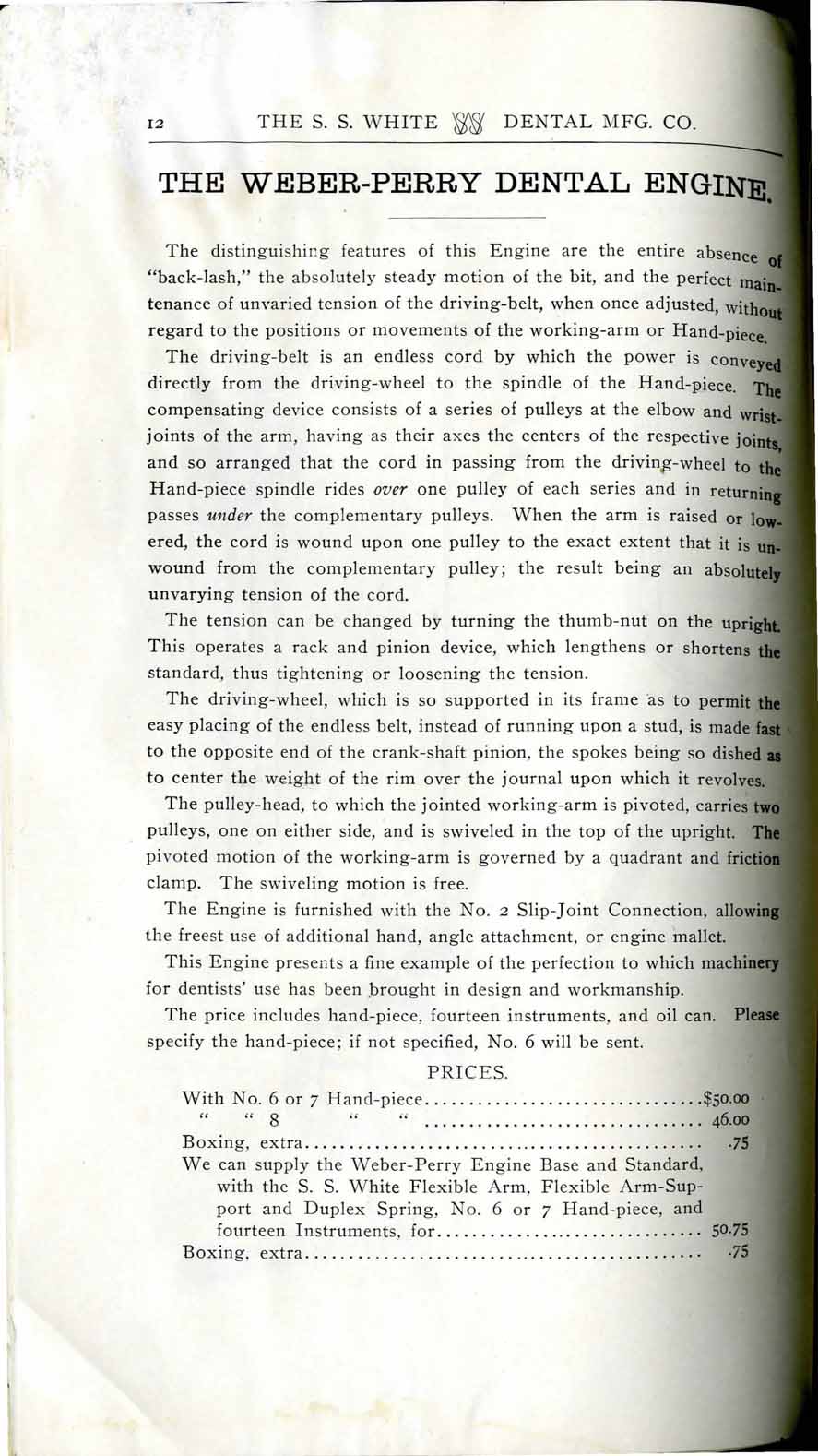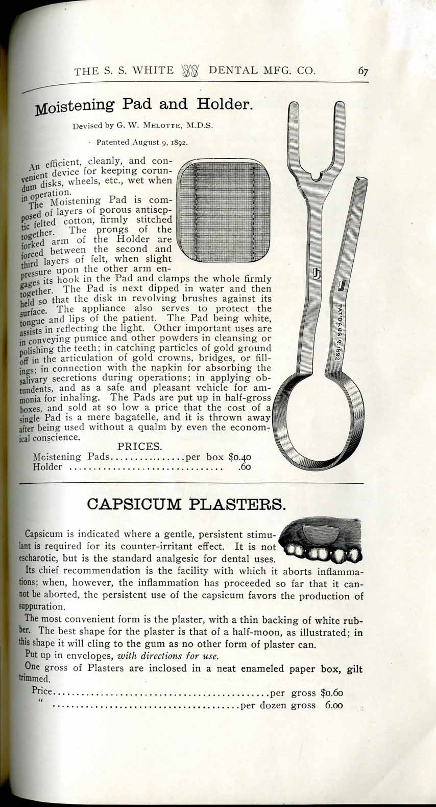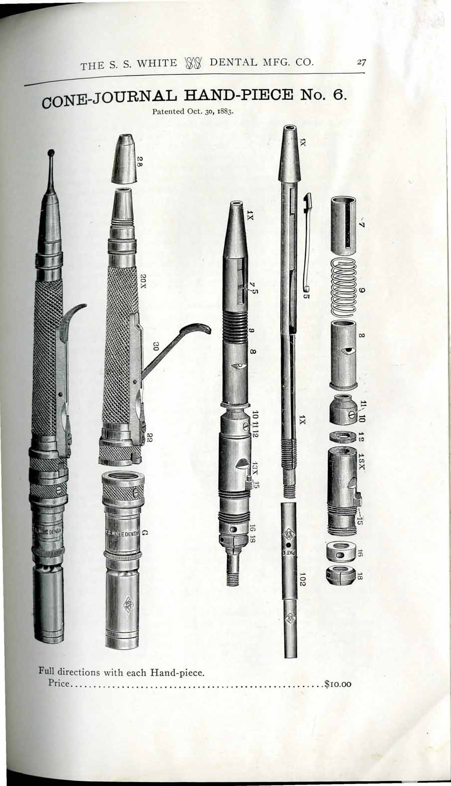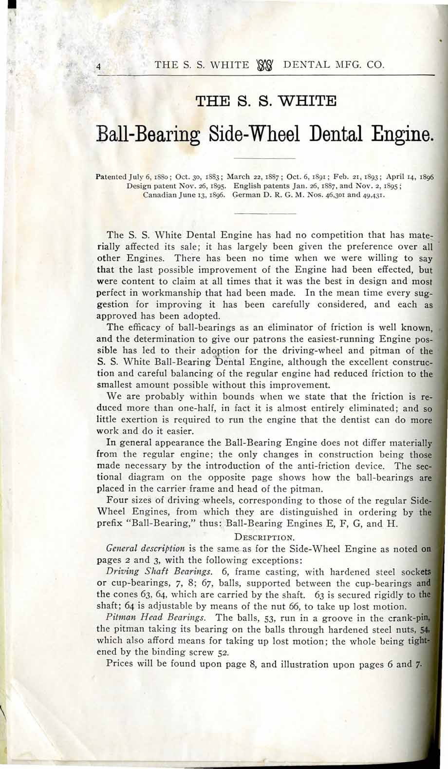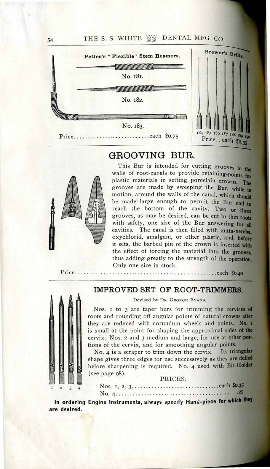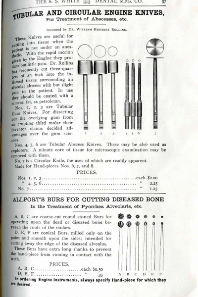 1898 catalog of dental equipment from S. S. White Dental Mfg. Co., including some photos, drawings, detailed descriptions, and prices.
