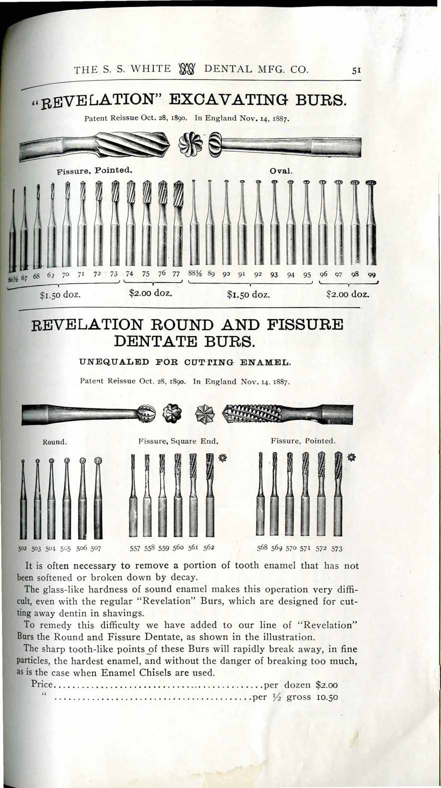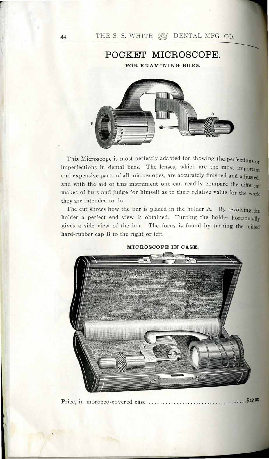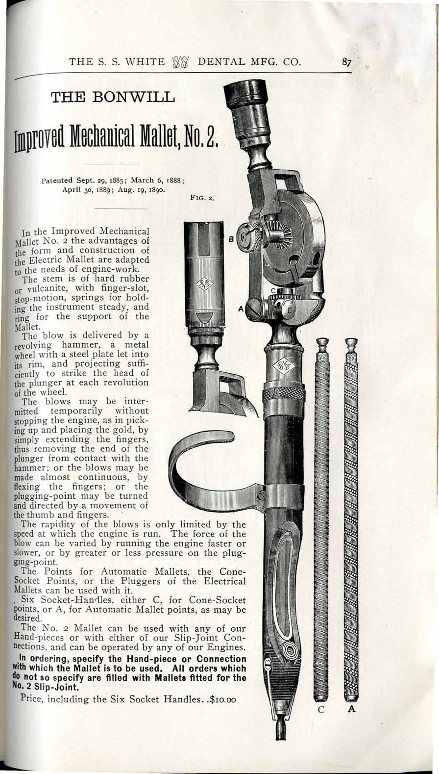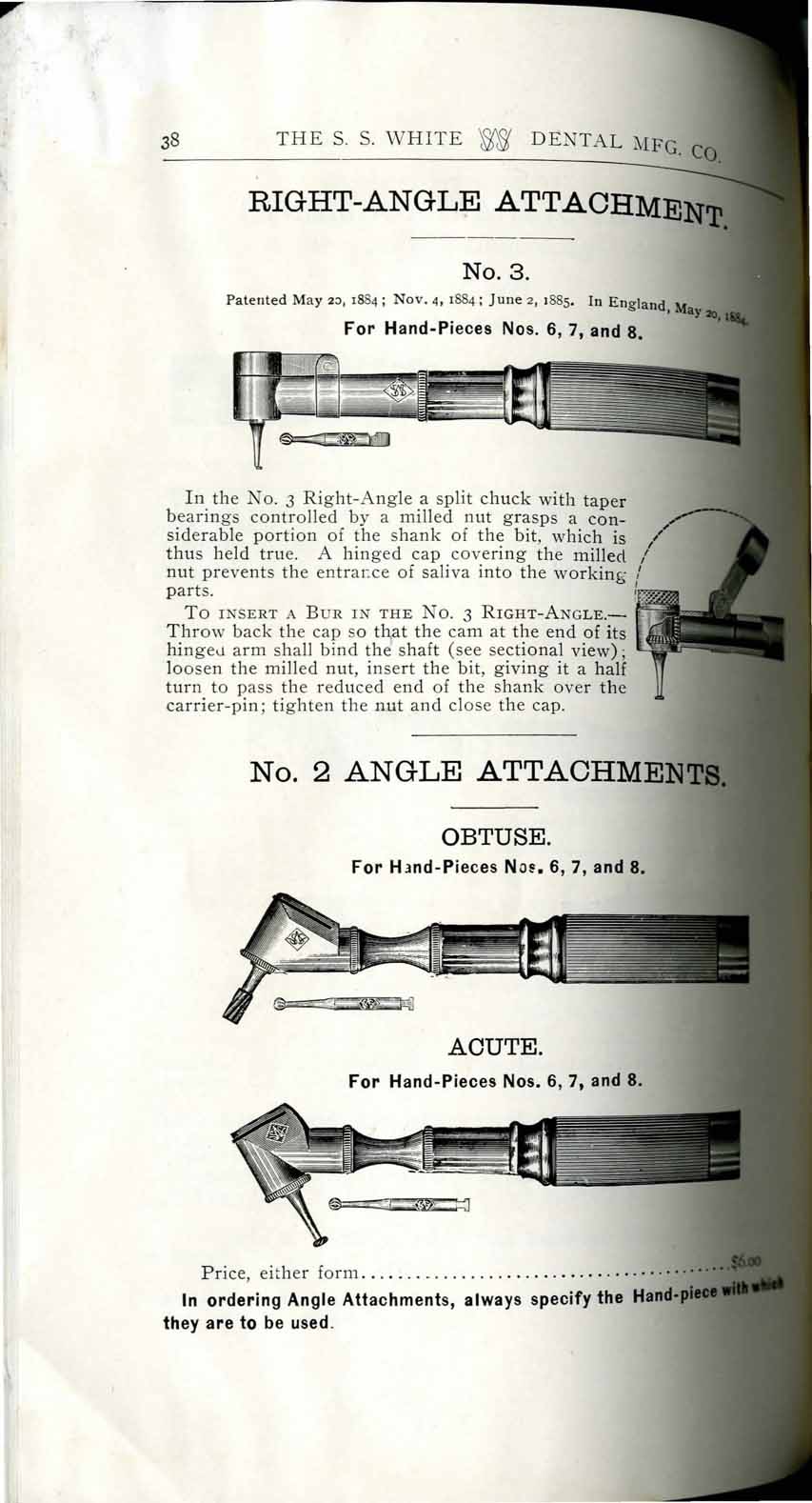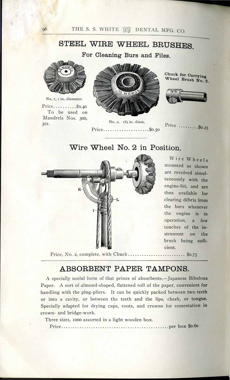 1898 catalog of dental equipment from S. S. White Dental Mfg. Co., including some photos, drawings, detailed descriptions, and prices.