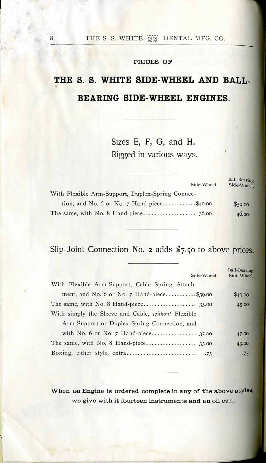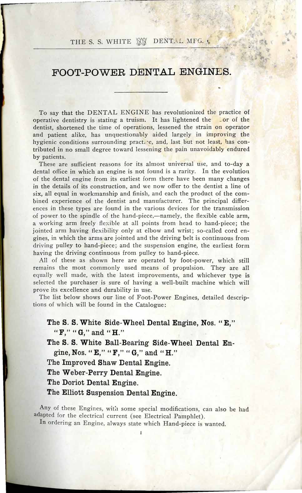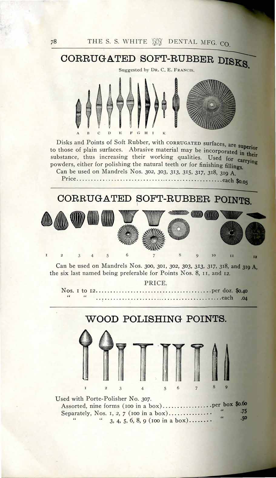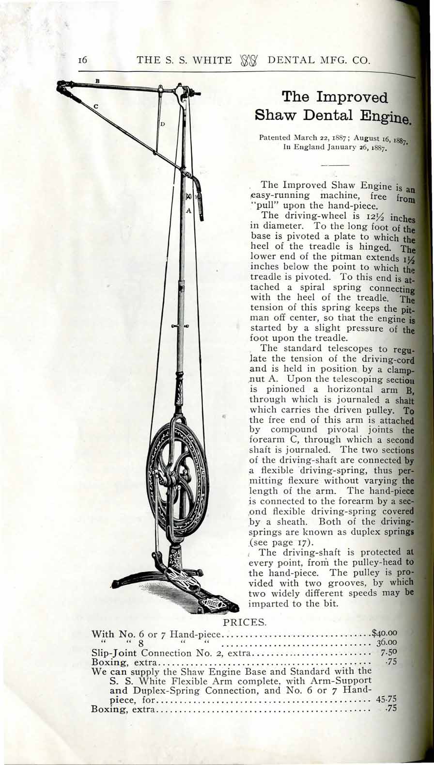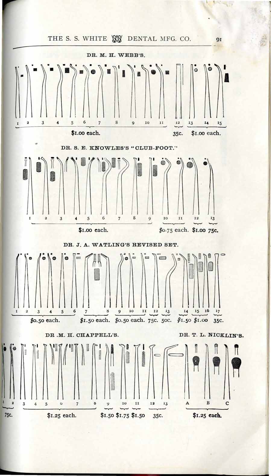 1898 catalog of dental equipment from S. S. White Dental Mfg. Co., including some photos, drawings, detailed descriptions, and prices.