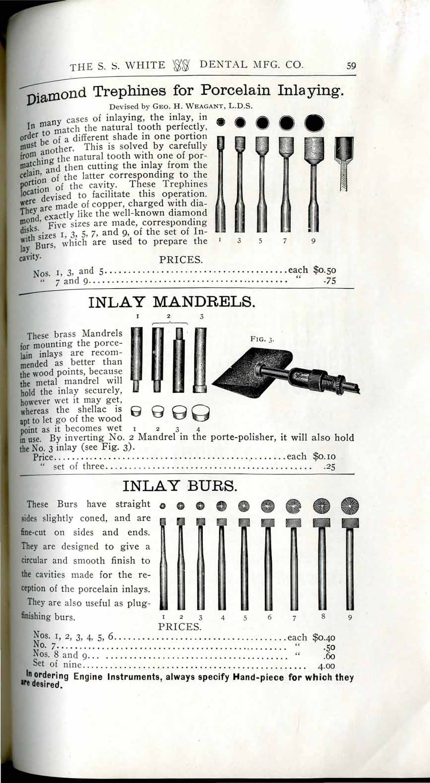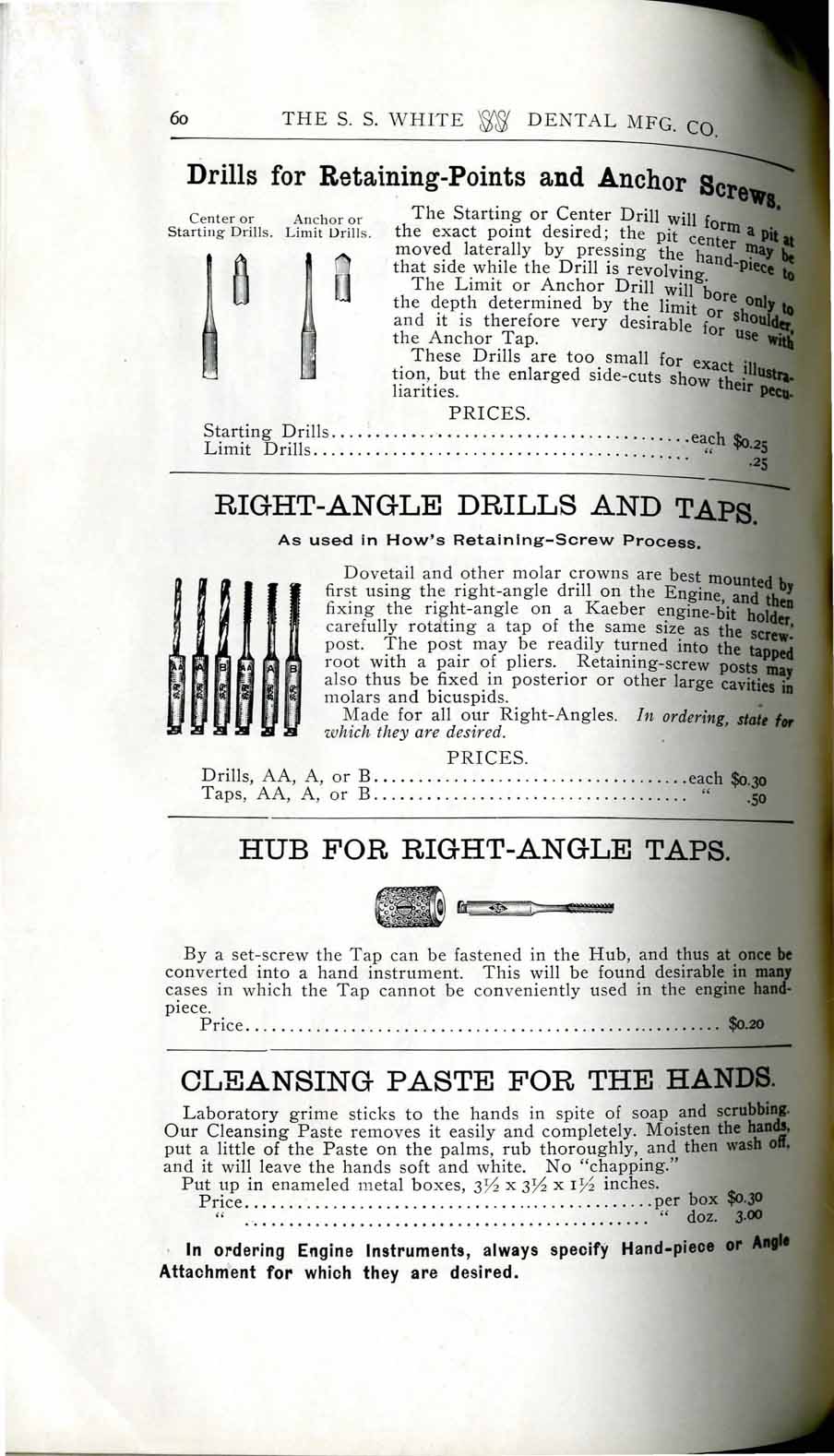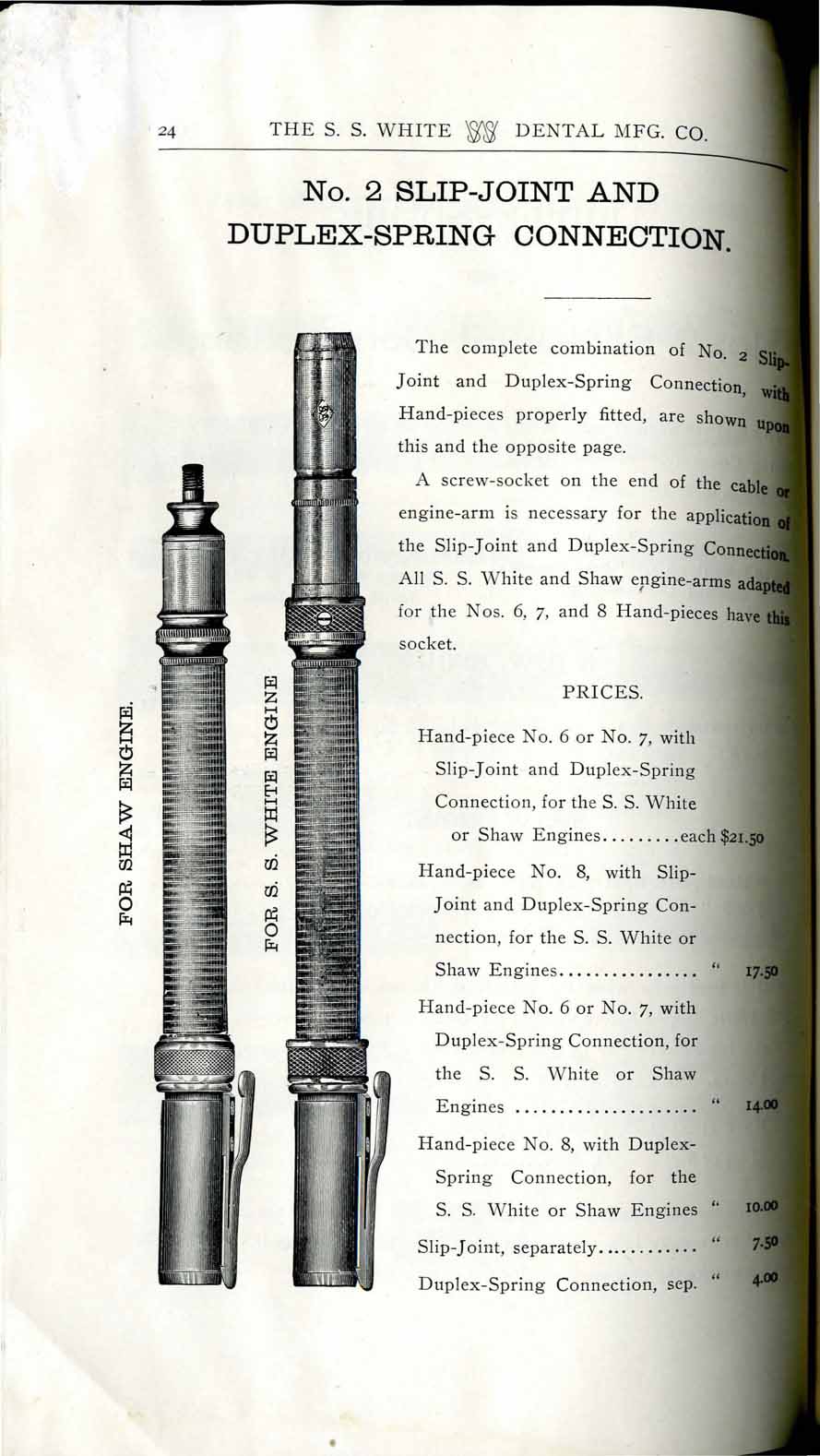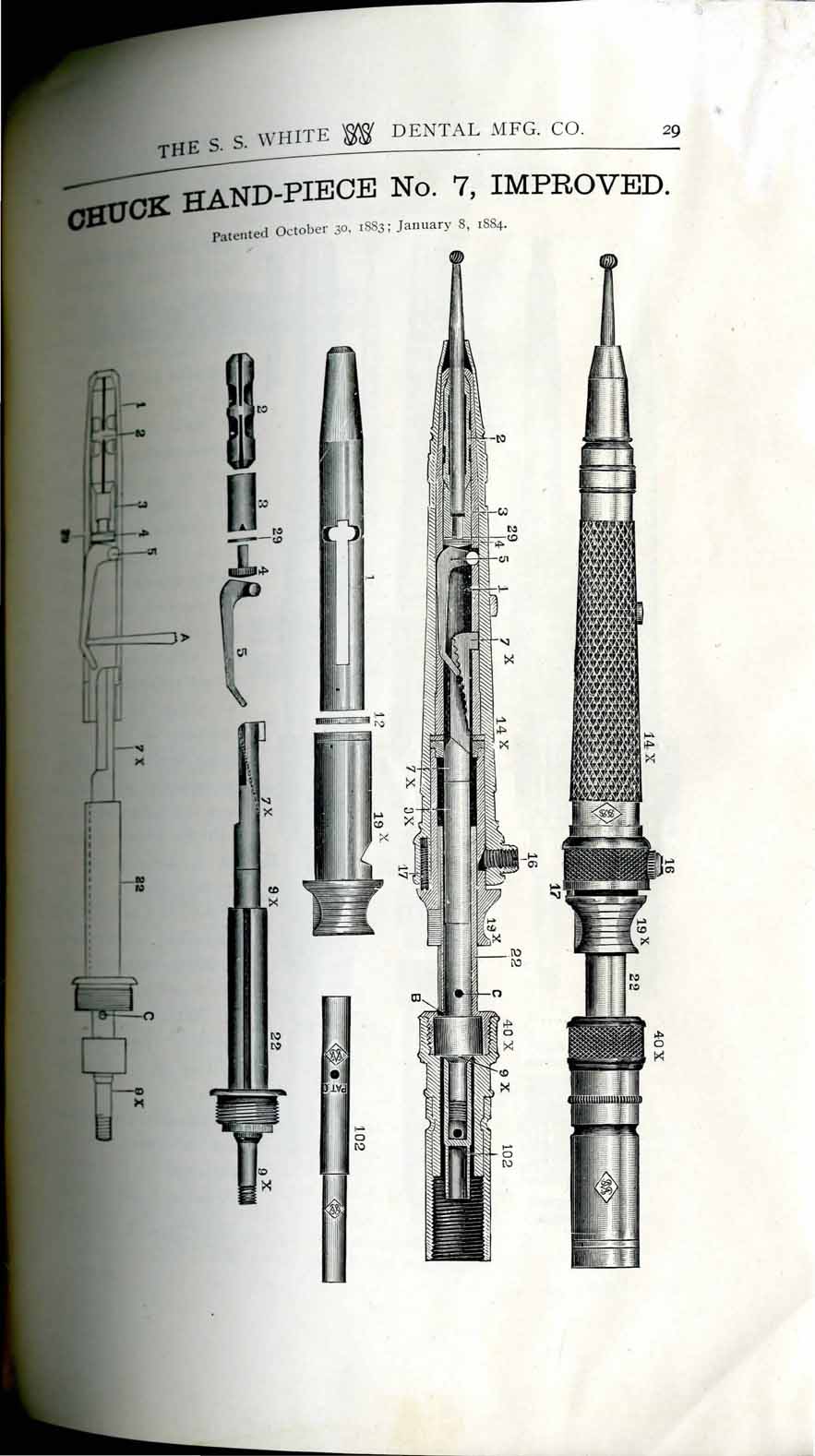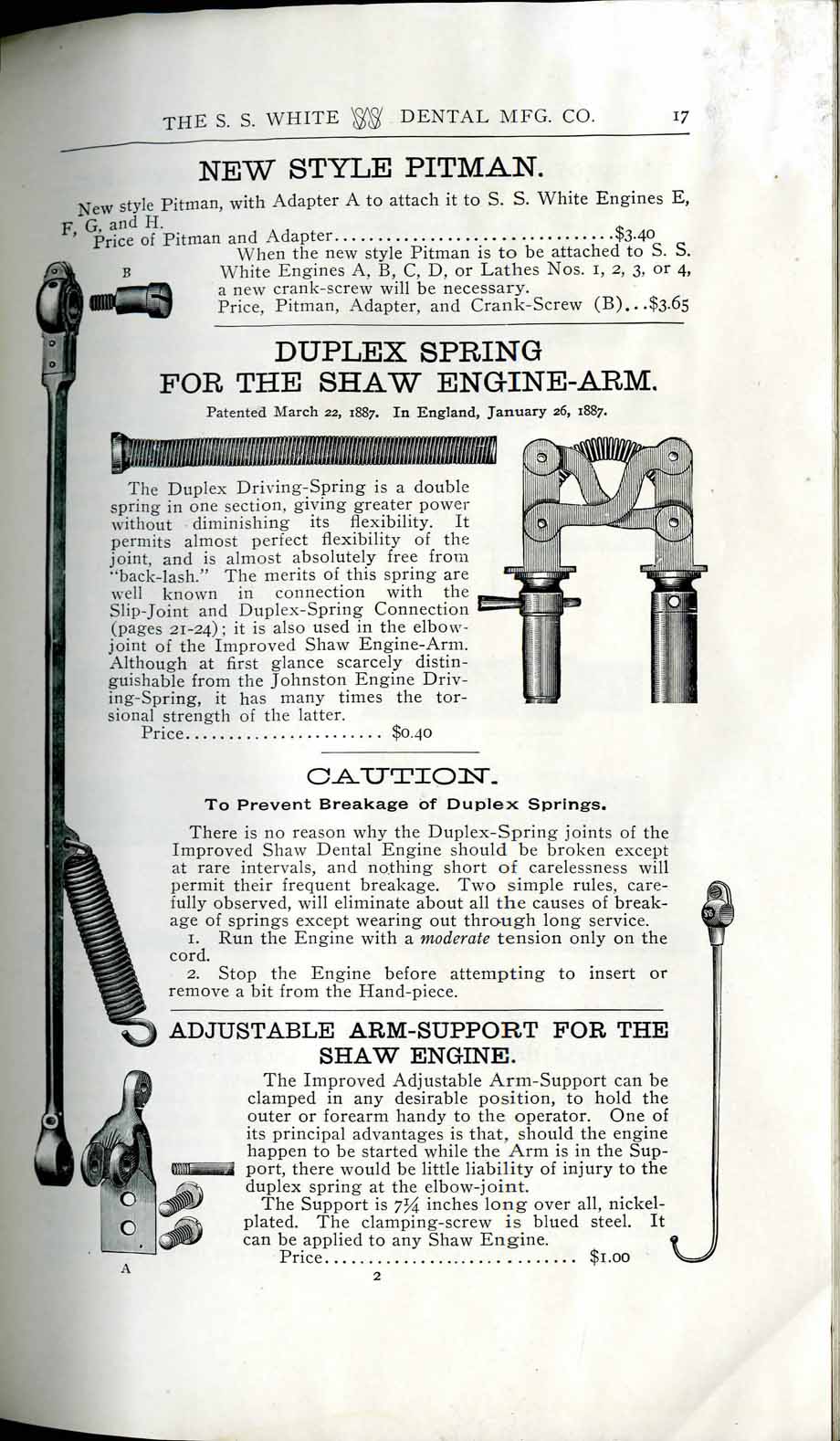 1898 catalog of dental equipment from S. S. White Dental Mfg. Co., including some photos, drawings, detailed descriptions, and prices.