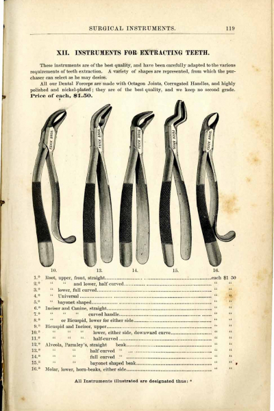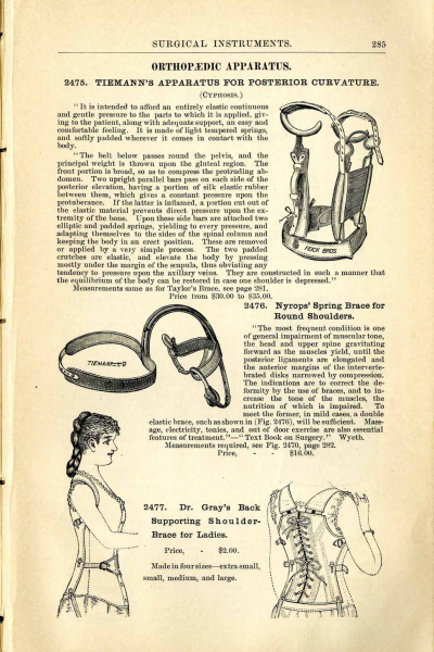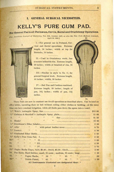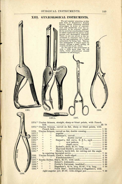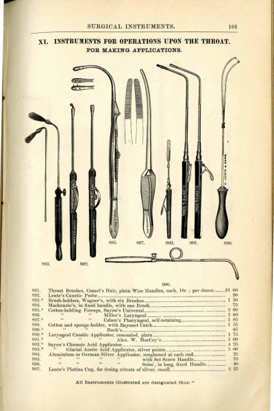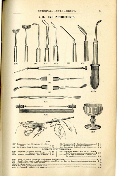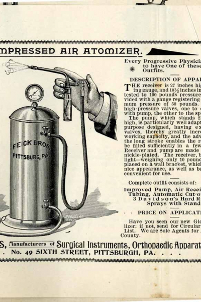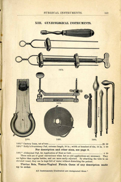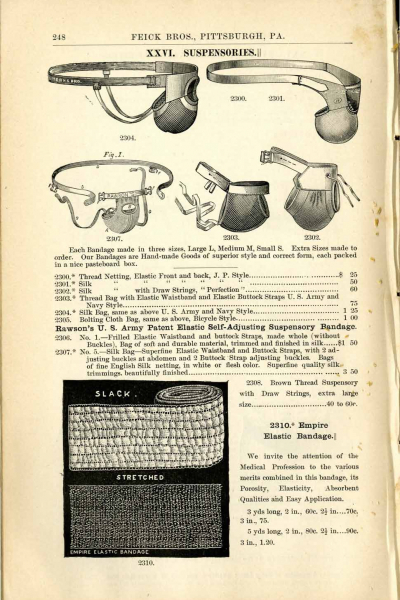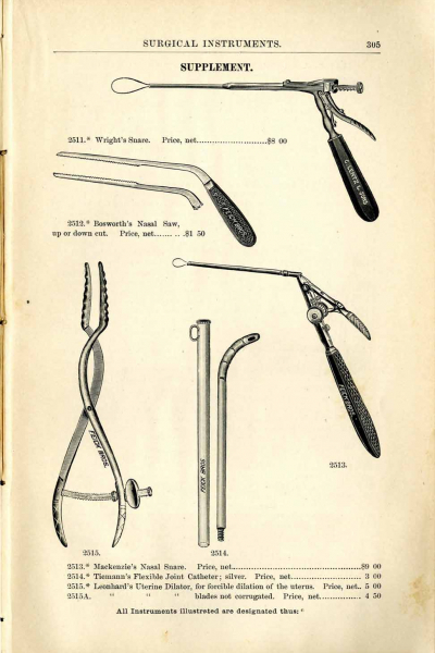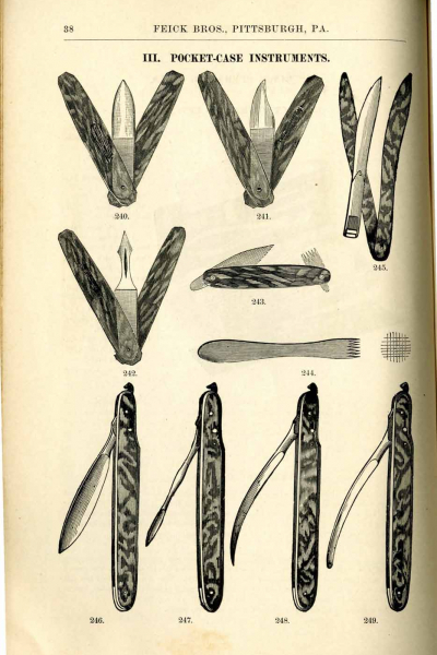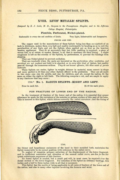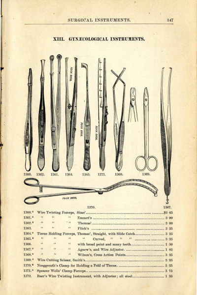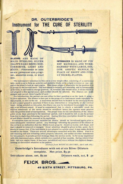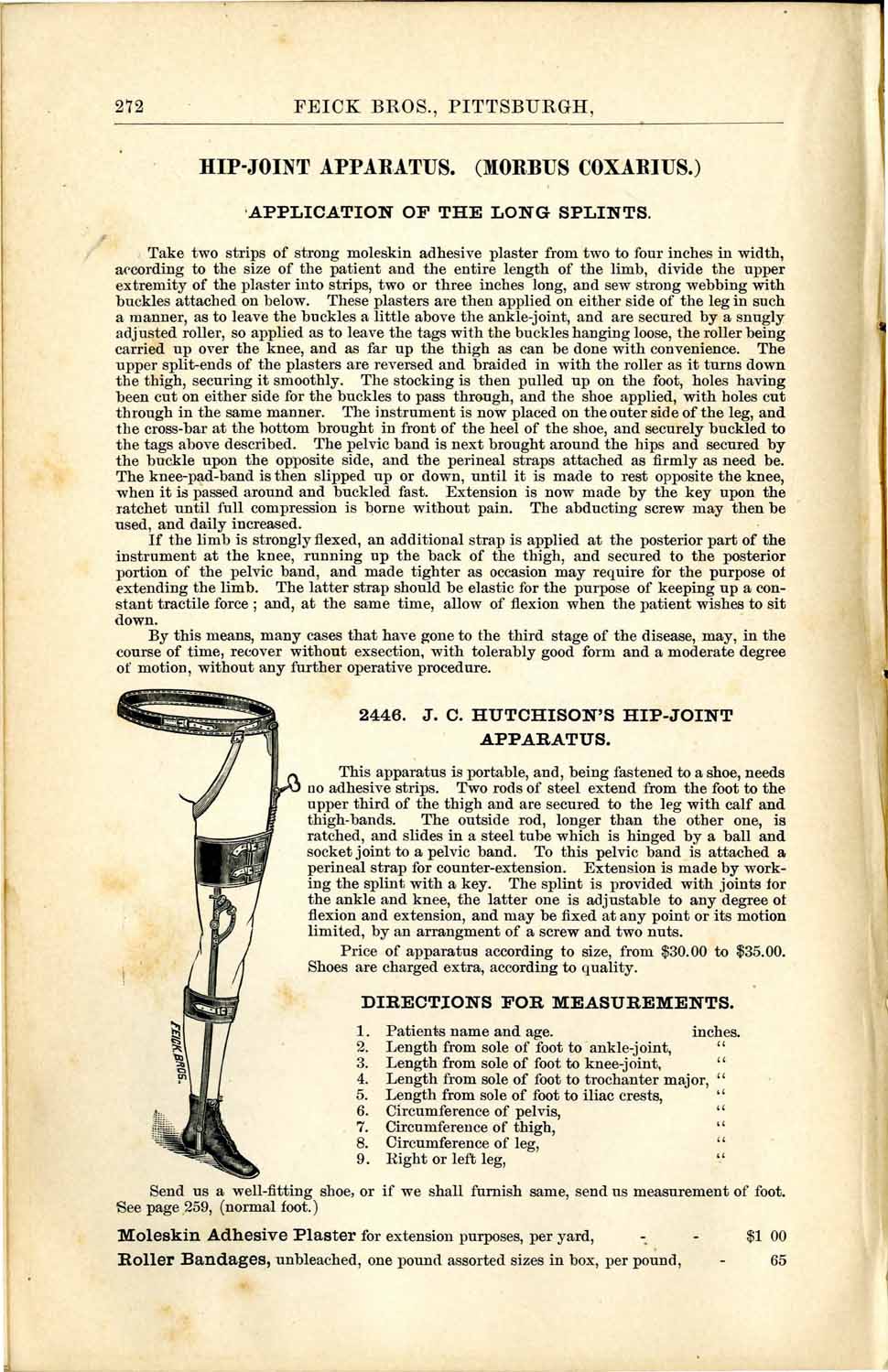 1894 catalog of surgical equipment from Feick Bros., including drawings, descriptions, prices, and advertisements.