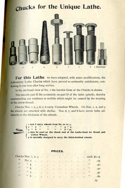 1896 catalog of a variety of different types of dental office and laboratory equipment from S. S. White Dental Mfg. Co., including drawings, descriptions, and prices.