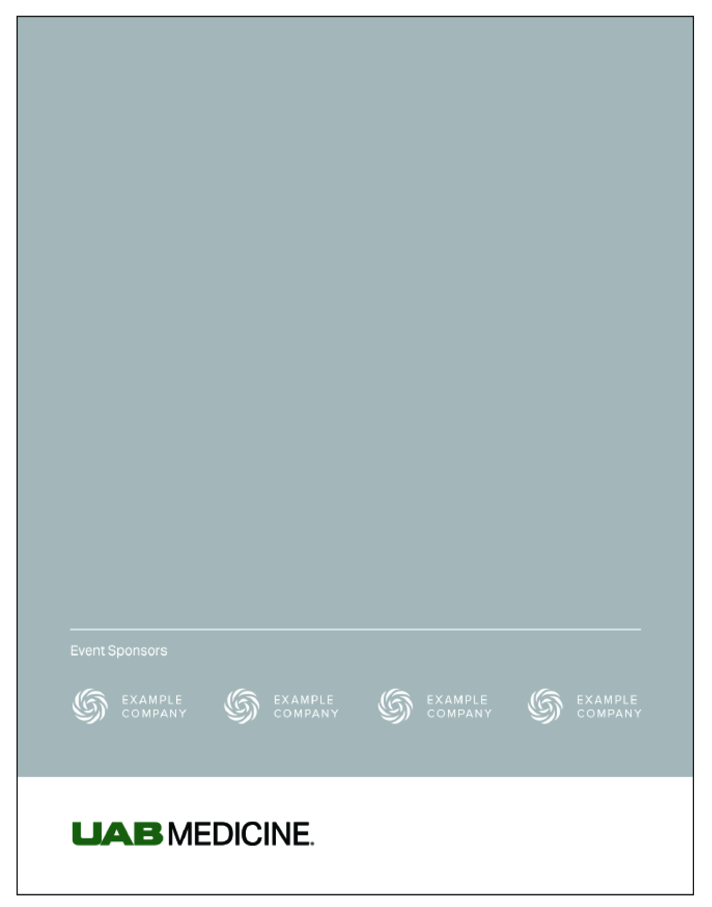 Units often partner with external organizations and other institutions and demonstrate a need to co-brand with that organization. Units may use a lockup if only one UAB unit is included as a sponsor. Otherwise, a core logo must be used in place of multiple unit lockups. All third-party branding and sponsorship guidelines must be followed and approvals must be granted before materials and communications are drafted.