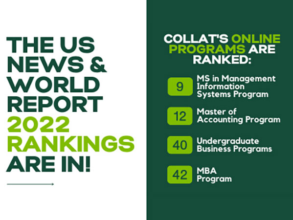 Collat's portfolio online undergraduate online degrees ranked No. 40 in the best bachelor's in business programs category.