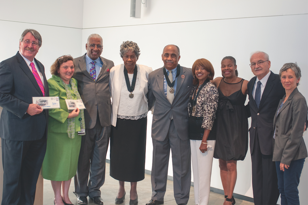 Dean Palazzo, AEIVA Director Lisa Tamiris Becker, Renee Kemp-Rotan and the Honorable Mayor William A. Bell of the City of Birmingham stand with foot soldiers who marched in Selma on Bloody Sunday as well as representatives of Peter Magubane and Spider Martin, including Martin’s daughter Tracy.The Abroms-Engel Institute for the Visual Arts was the site of a number of moving events that brought UAB and surrounding community together to explore topics of racial discrimination, voting rights, and equality.