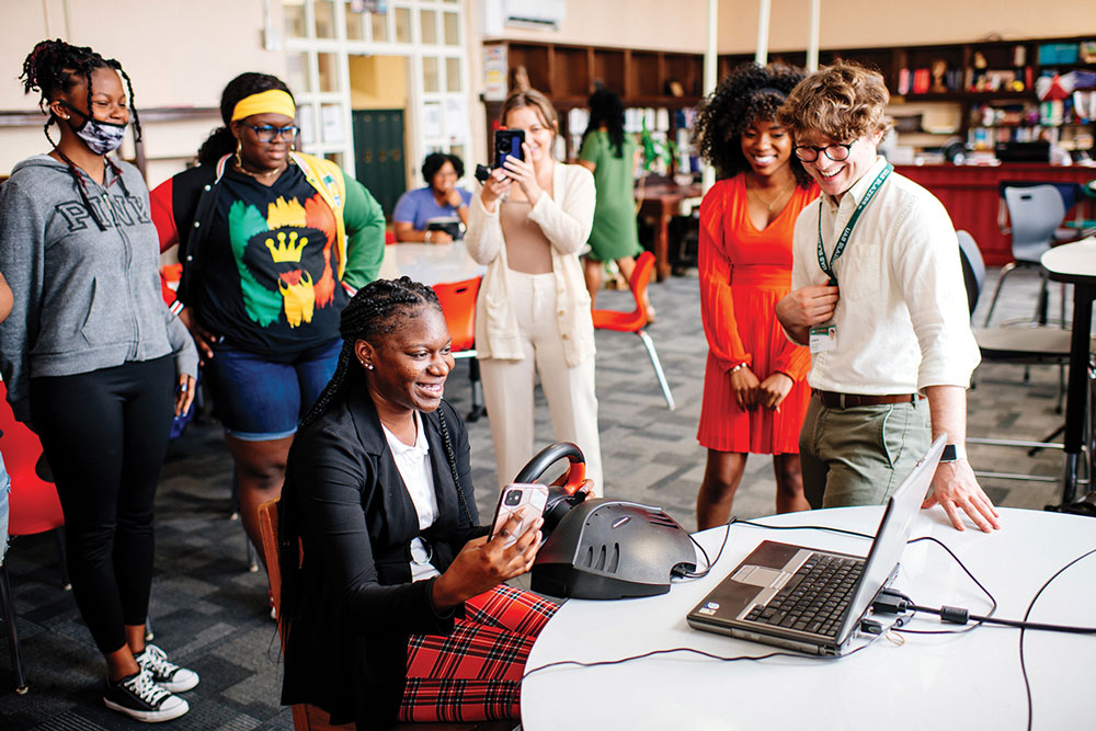 Braxton Wade, State Farm Sales Leader, and Arlene Lester, State Farm Corporate Responsibility Analyst, present a generous donation to the TRIP Lab.In addition to providing valuable research data, the simulator also enables teenagers to experience dangerous driving situations while operating in a secure environment, rather than out on the open road. In an attempt to reach as many high schoolers as possible, the TRIP Lab regularly takes a portable simulator to the Birmingham City Schools and works with students in driver’s ed classes.