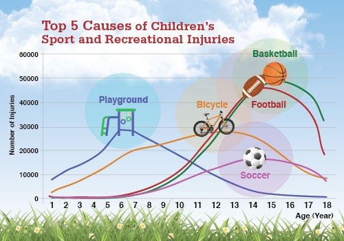 UAB Research Examines Youth Sports Injury RatesResearchers at the University of Alabama at Birmingham have taken an in-depth look at patterns in pediatric sports-related injuries in anew study published in the Journal of Athletic Training.Researchers at the University of Alabama at Birmingham have taken an in-depth look at patterns in pediatric sports-related injuries in anew study published in the Journal of Athletic Training.The study suggests that tailoring safety regulations more closely by age could impact the incidence of injury. It examined records of more than 2.5 million children ages 1-18 who were seen in hospital emergency departments for sports or recreation injuries during an eight-year study period. Among those, the five most common causes across all of childhood were basketball, football, bicycling, playgrounds and soccer. -