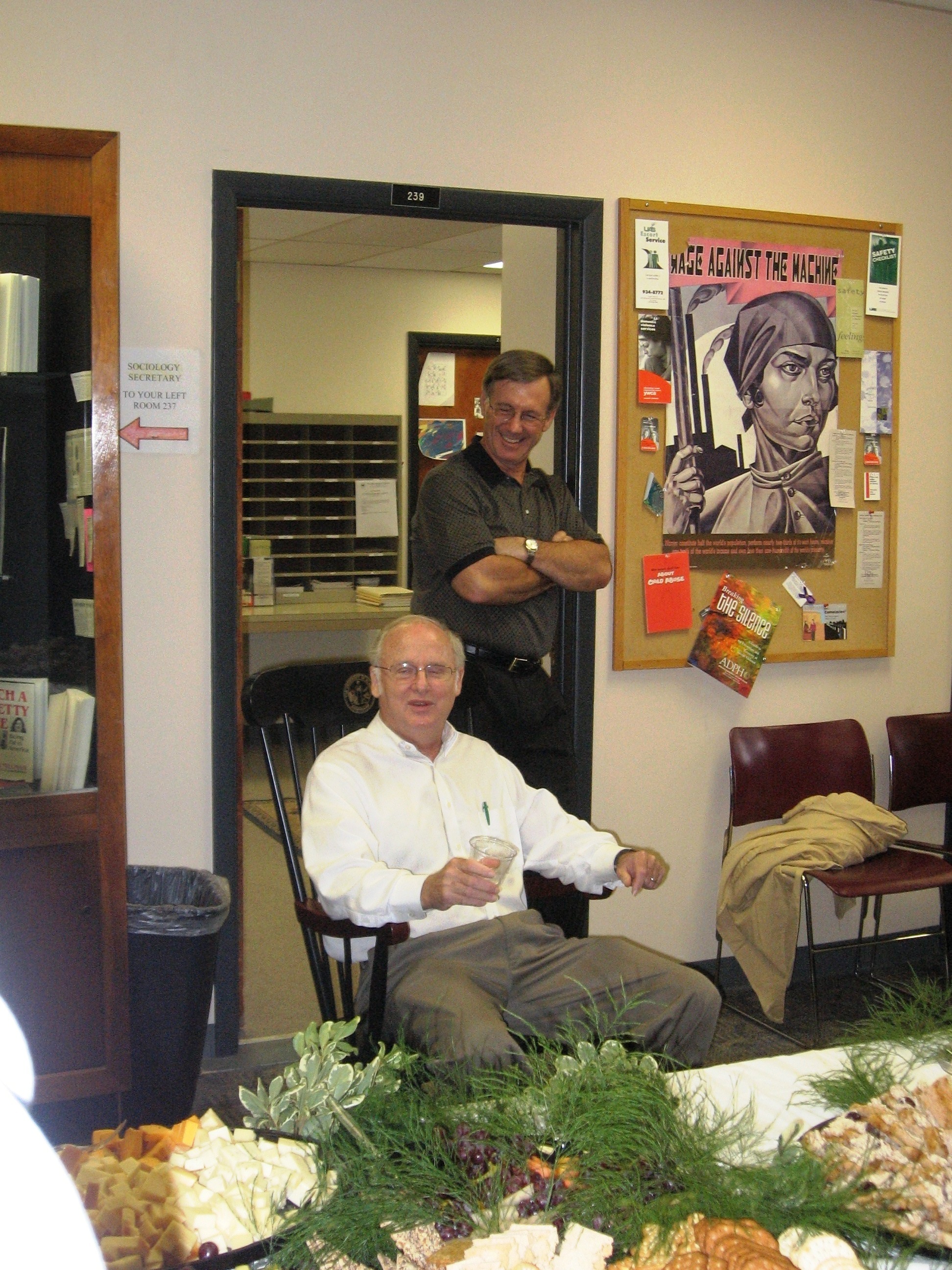 Dr. Carl McFarland (standing) with Dr. Tennant McWilliams (seated) at a reception. Photo courtesy of Dr. McFarland.