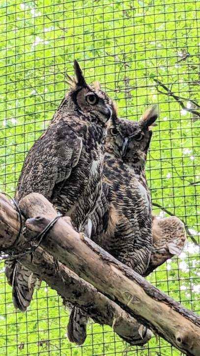 Great Horned Owls at the Treetop Trail at Oak Mountain State Park.From Princess, the intelligent albino Turkey Vulture that likes to play tug-of-war with my hat, to Junior, the crazy Great Horned Owl that thinks he’s a bat and tries to hang upside-down from the ceiling, I got to know each bird individually and shared their stories with the people that visited the trail. People would always end up asking why the birds were in captivity, and I would share about the injuries they’d received because they live so close to people.