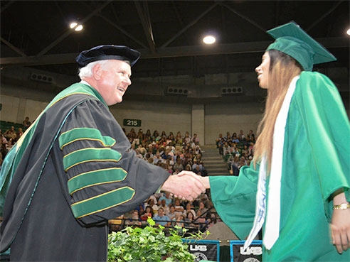 An estimated 625 students will participate in the commencement ceremony, and 745 students will graduate. The university’s highest degrees will be conferred on 79 students from 18 states and seven countries in the doctoral hooding ceremony.