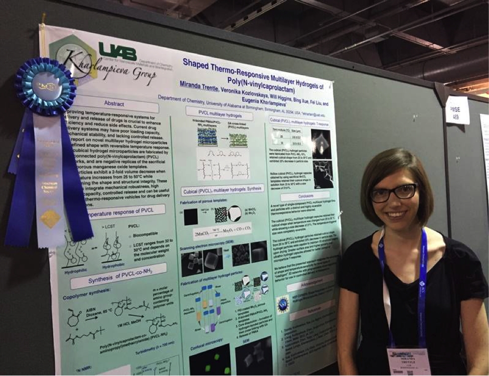 Chemistry graduate student Miranda C. Trentle received the PMSE Best Poster Award at the 2016 ACS Philadelphia National Meeting.