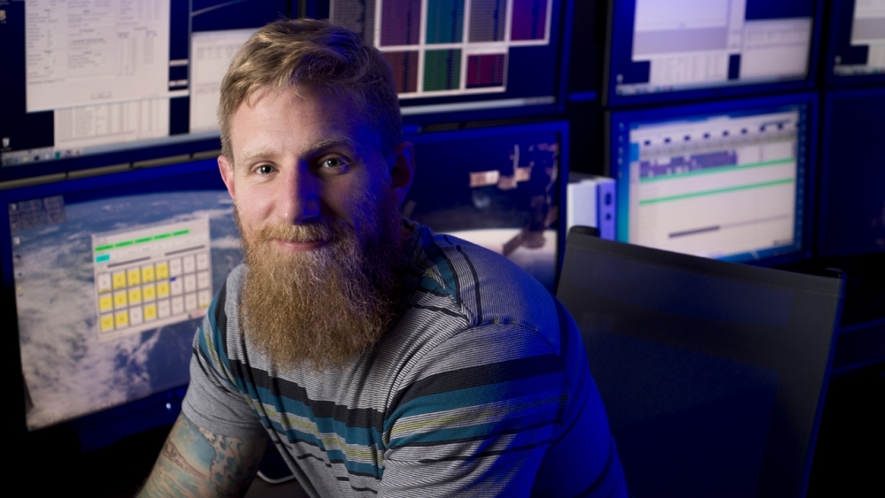 Chase Chandler, a Navy veteran now majoring in physics at UAB, oversees research projects running on the International Space Station at NASA's Payload Operations Integration Center in Huntsville.