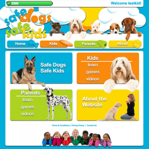 Screenshot of “Safe Dogs, Safe Kids” website homepage.