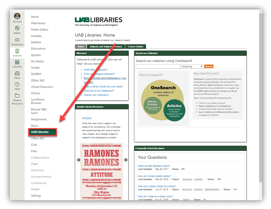 If UAB libraries is not enabled in your course follow these directions: