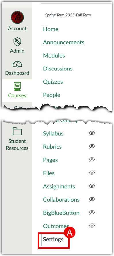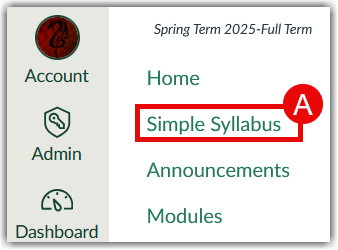 - Simple Syllabus (A) will now be visible and enabled in your left-hand course navigation.