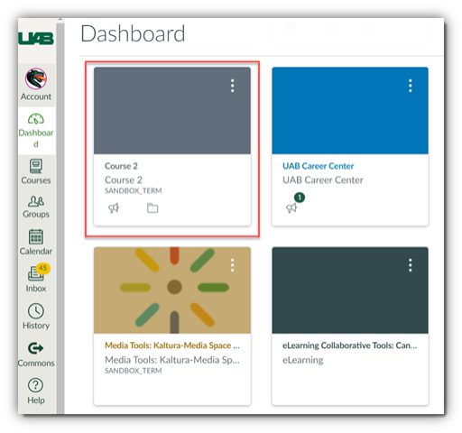 Students can access Harmonize within a Canvas course. To do so, go to your course list on the Canvas dashboard and select the course you would like to access Harmonize in.