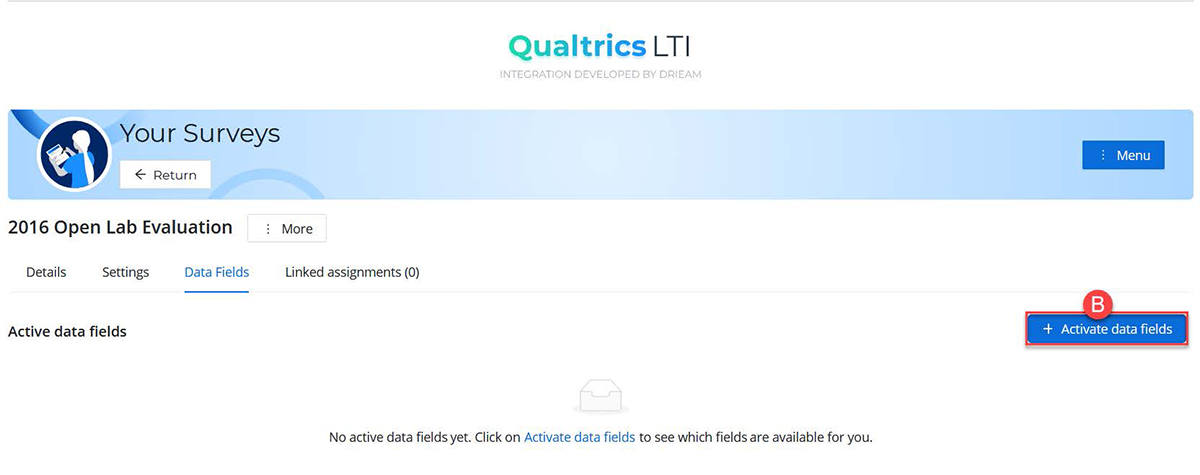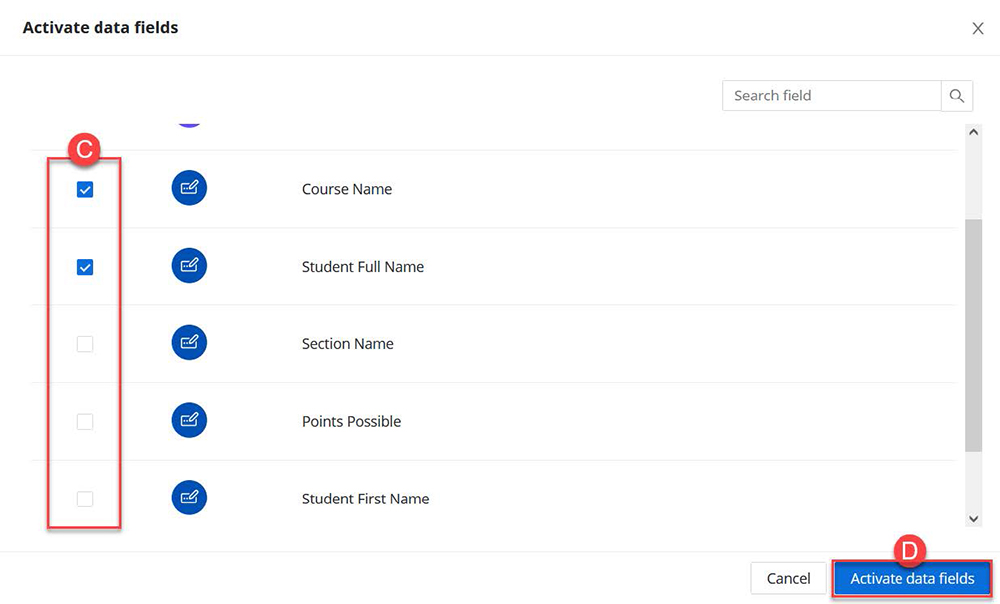 - Click on the Activate data fields button (B).