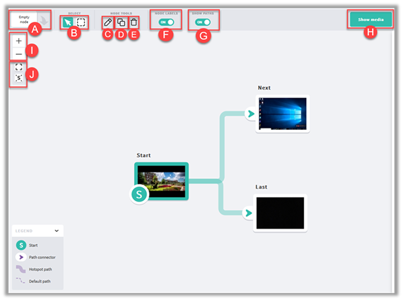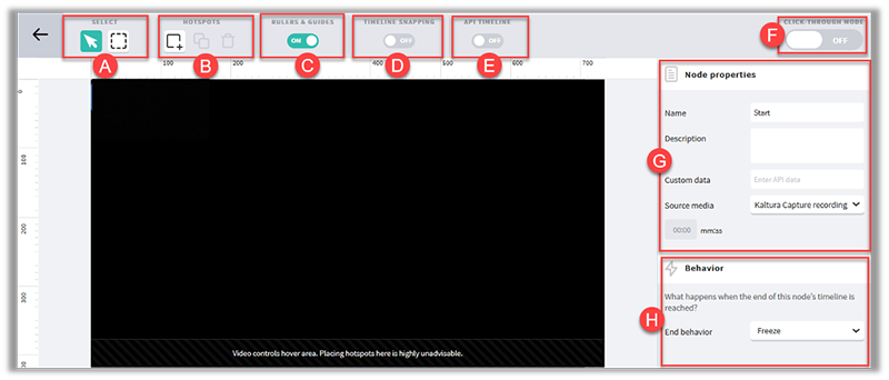 - The Behavior (H) is what happens when a node’s timeline has reached the end. There are options to freeze or create a default path so that the video automatically goes to another video.