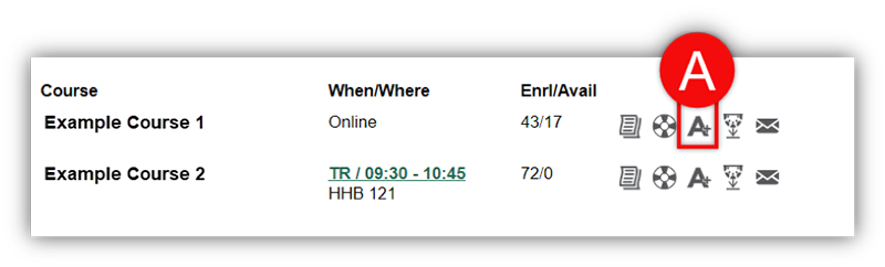 - Click on the Canvas Grades (B) icon beside the desired course to pull grades from that Canvas course.