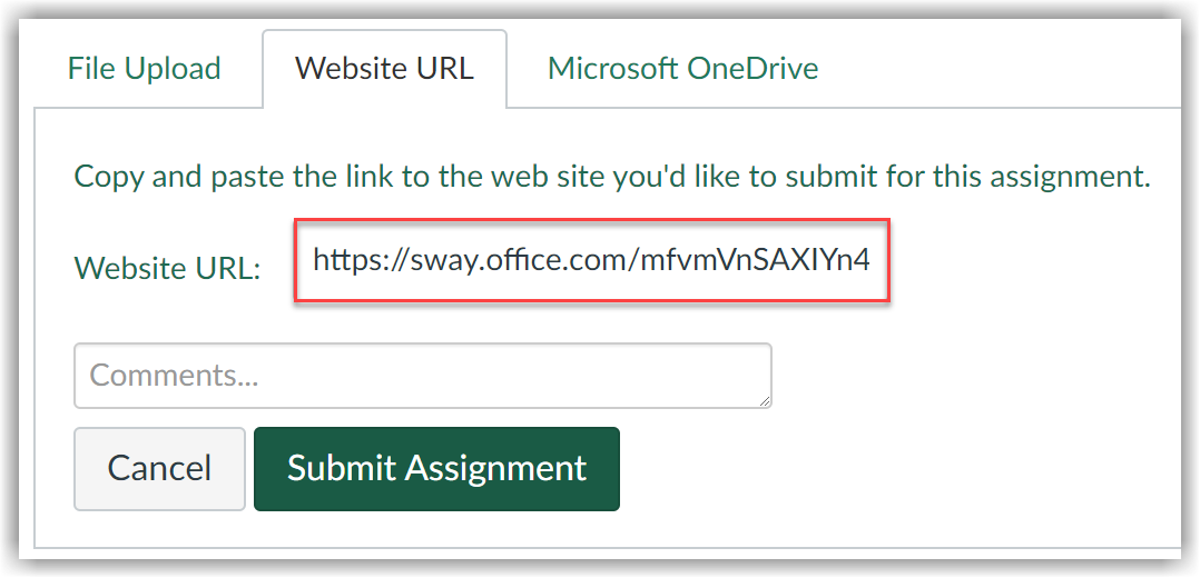Students can then publish their Sway publicly and submit the URL to the Canvas assignment opens a new website.