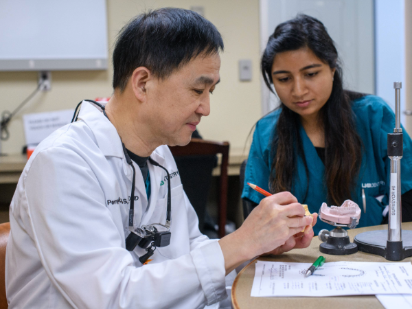 Dr. Liu working with student.Meanwhile, Tricia Osuna, past president and Fellow of the American Academy of Dental Hygiene, will provide a lecture entitled “Change Your Thoughts and Improve Your Outcomes: An update on protocols, products and treatment options.” The course will help hygienists sort through all the new advances in products and technology and determine when and how to integrate those advances into regular use.