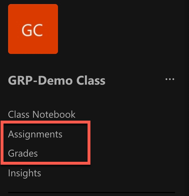 Figure 1: Assignments and grades tabs (shown here) will no longer be available. UAB will remove the ‘Assignments’ and ‘Grades’ tabs on all Class Teams in between the Fall 2021 and Spring 2022 semesters.