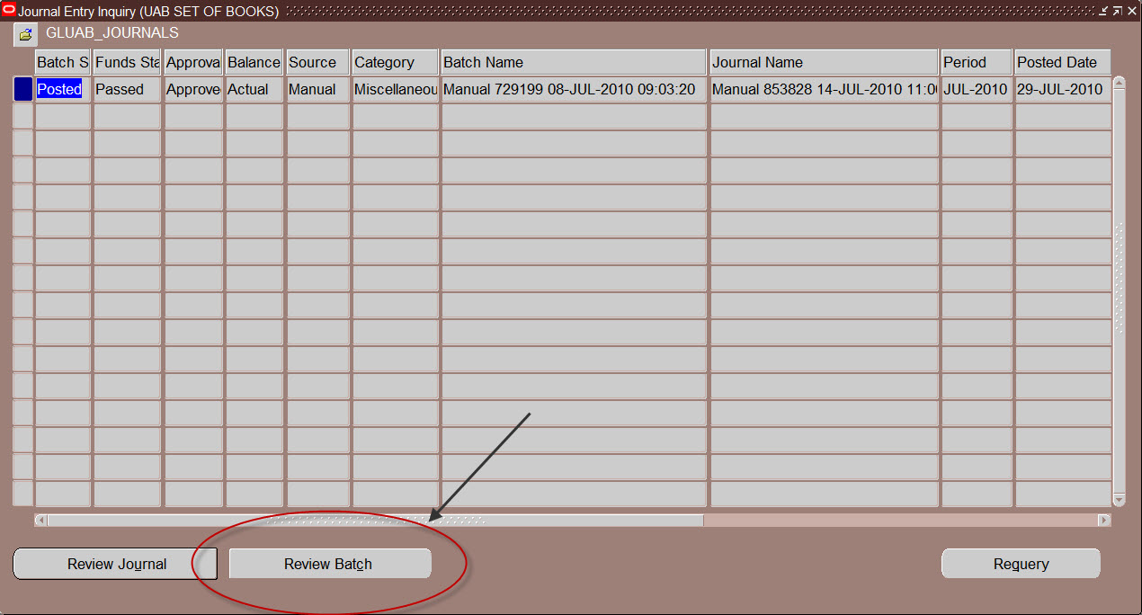Actual, encumbrance, or budget OGL journal batch detail can be viewed through the Administrative System's Journal Entry Inquiry window. However, due to subsetted security, the viewable data is limited only to those account strings within the organization(s) for which the user has organizational access.