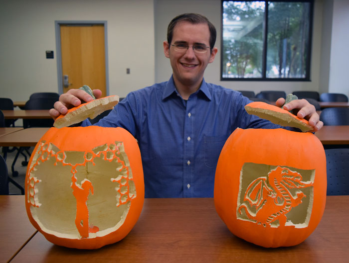 “I started carving pumpkins when I was old enough to hold a knife,” said Schultz, a fifth-year graduate student in the Immunology theme of the Graduate Biomedical Sciences program at UAB. “My parents taught both my brother and I how to carve very intricate pumpkins at an early age. I never really carved the typical pumpkin faces; I started off carving owls, spiders and different scenes.”