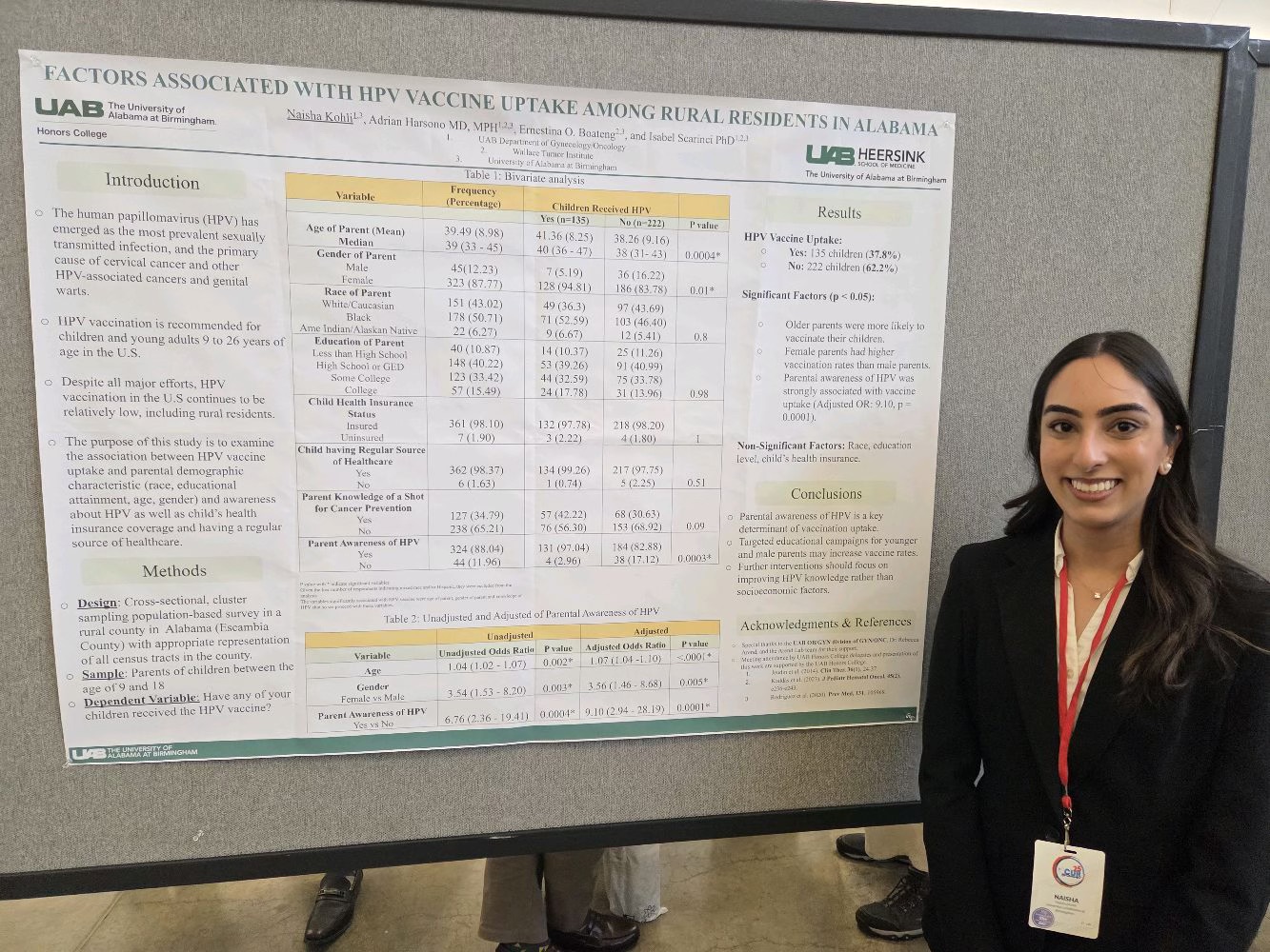 Naisha Kohli, 2025 NCUR Honors Delegateof something bigger,” said Naisha Kohli, a senior in the UAB Honors College and 2025 NCUR honors delegate. “Seeing like-minded peers present their work taught me the importance of integrating scientific inquiry with the broader world, and it reminded me that there is still so much left to discover. This experience made me more certain that I want to pursue a career where research, communication, and impact intersect within each other.”