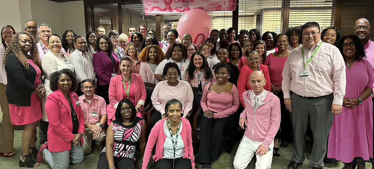 UAB Human Resources invites the UAB community to help raise awareness about the impact of breast cancer during Breast Cancer Awareness Month in October. This annual time of recognition is devoted to educating people about the importance of early detection and access to timely, high-quality care. This year, HR staff came together to Go Pink! on October 24 — see the group photo below. You can get involved by submitting photos online of yourself, your co-workers or your deparment dressed in pink. Visit UAB News online to learn more.