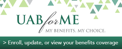 To enroll, update or view your benefits coverage, log in to the UAB for Me portal below. UAB for Me is available year-round to provide employees access to plan information, decision-making tools and important communication regarding your UAB benefits.