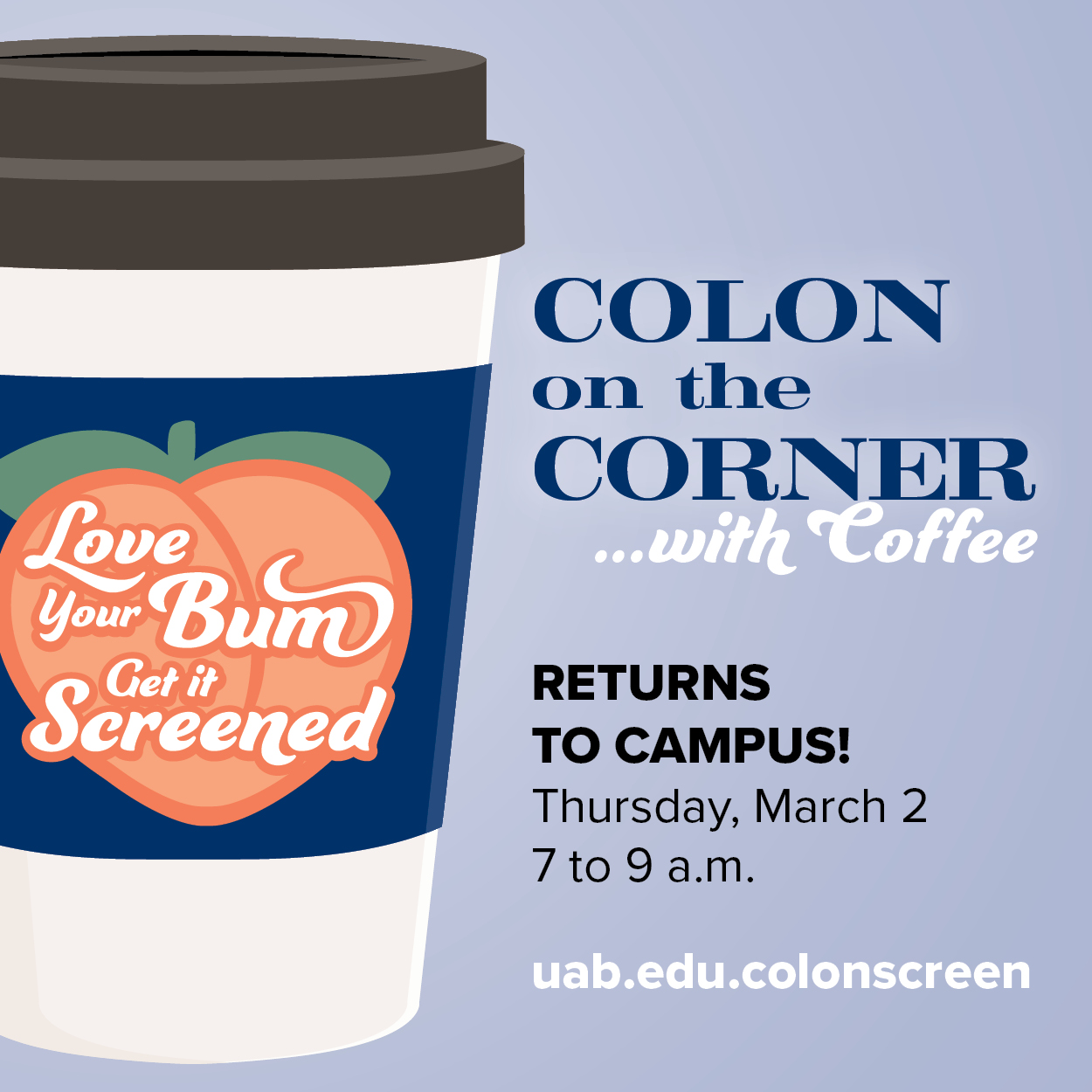 Mark your calendar for Colon on the Corner 2025, Thursday, March 6, 7 to 9 a.m., in the Kirklin Clinc First Floor Atrium, and check out more colorectal health resources below...