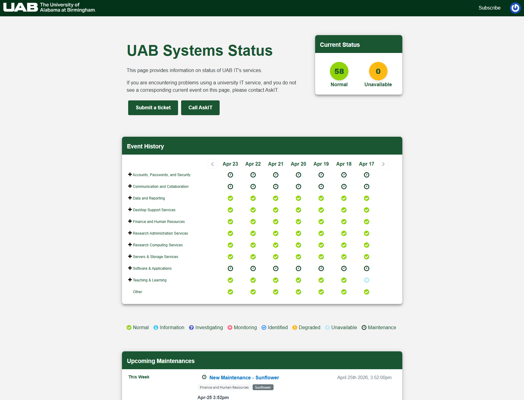 UAB IT provides a wide range of technology solutions to support you in your work. This site serves as a hub to connect you with those solutions.