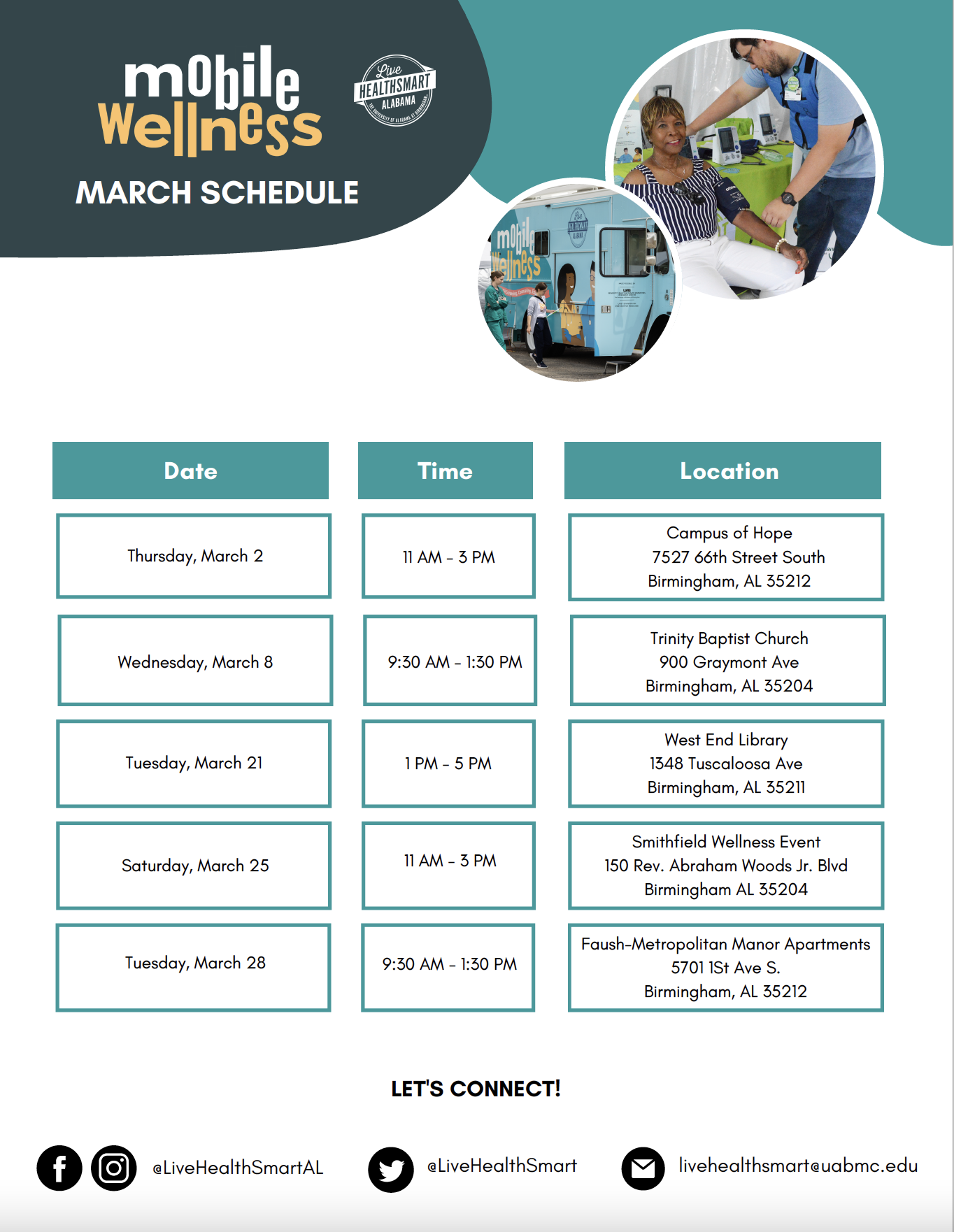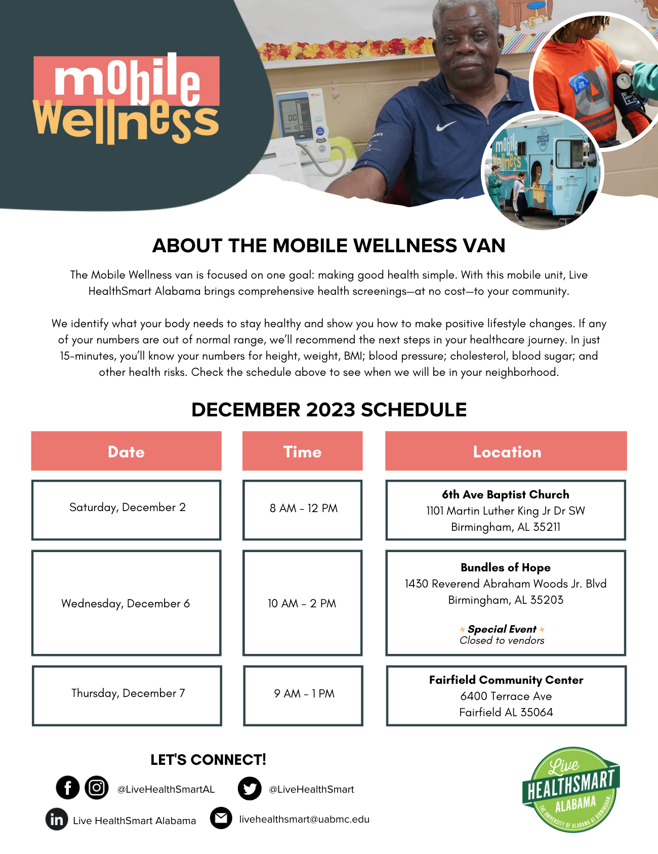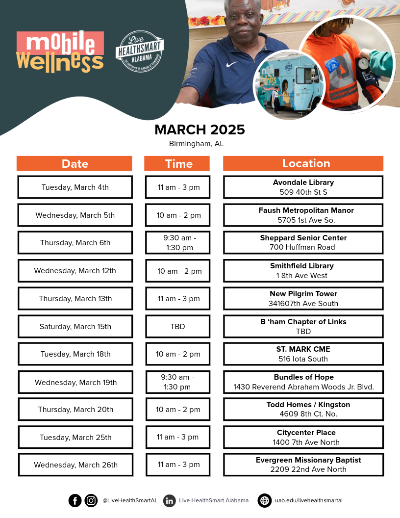 Prevention and Wellness is one of the ways Live HealthSmart Alabama supports healthy choices. As one of our program’s four keys, we work to enhance healthcare by facilitating screenings, educations, and counseling to communities across the state.