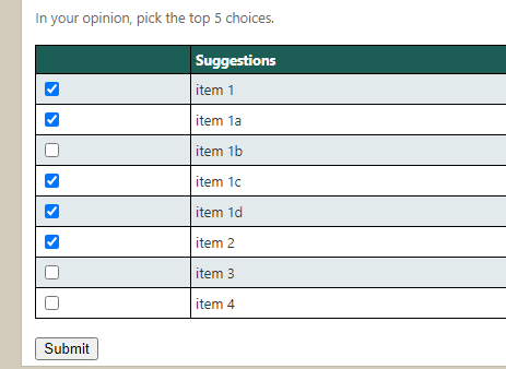 - Once you have completed your ranking for each item, hit Submit.