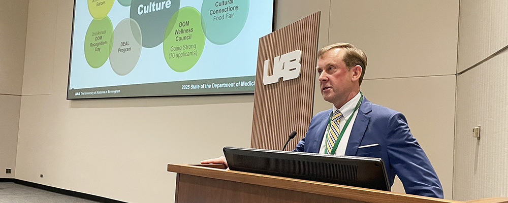 On Wednesday, March 12, 2025, Mark Dransfield, M.D., Interim Chair of the Department of Medicine, presented the annual State of the Department address in Margaret Cameron Spain Auditorium.