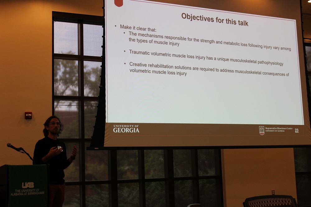 The Symposium’s external speakers were Jarrod A. Call, PhD, Associate Professor, Department of Physiology and Pharmacology, University of Georgia; Austin Robinson, PhD, Assistant Professor and Director of Neurovascular Physiology Laboratory, School of Kinesiology, Auburn University; Elizabeth Camille Vaughan, MD, Associate Professor of Medicine, Division Director, Geriatrics & Gerontology, Emory School of Medicine; Monica Serra, PhD, Associate Professor, Division of Geriatrics, Gerontology and Palliative Care, UT Health San Antonio; Joe Nocera, PhD, Associate Professor, Department of Neurology, Emory University School of Medicine; Madeleine Hackney, PhD, Associate Professor of Medicine, Division of Geriatrics and Gerontology, Emory University School of Medicine; Davis Englund, PhD, Postdoctoral Fellow, Physical Medicine and Rehabilitation, Kogod Center on Aging LeBrasseur, Lab Mayo Clinic; and Michael Roberts, PhD, Professor, School of Kinesiology, Director of Neurovascular Physiology Laboratory Auburn University.