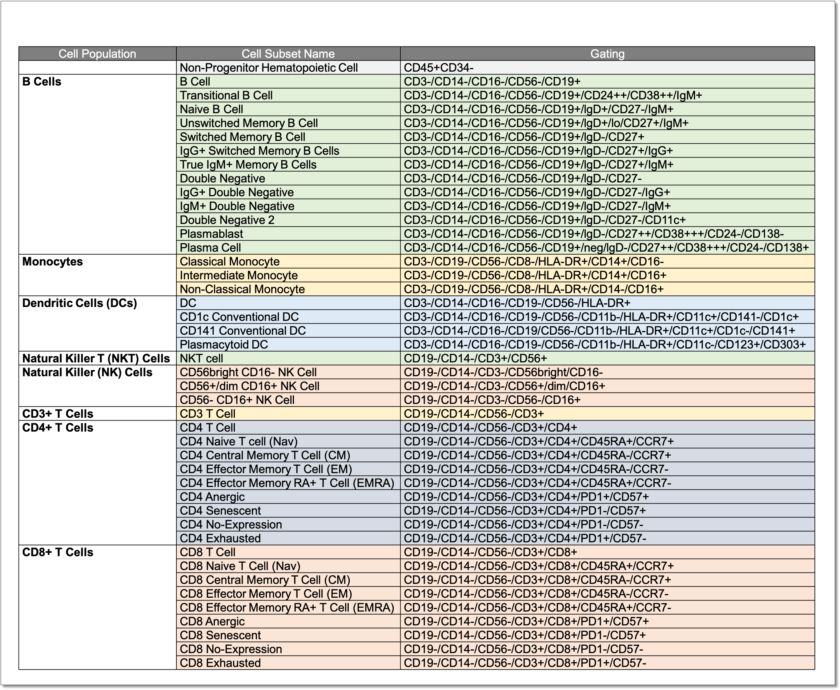 Identification of 44 human immune cell subsets using the PBMC panel