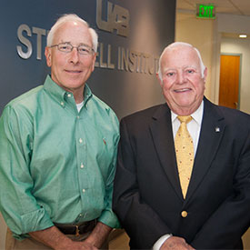 From left: Dr. Tim Townes, director of the UAB Stem Cell Institute, and Dr. Jack Montgomery, of the Huntsville Regional Campus, have both played prominent roles in the search to cure a deadly immune system disease.Although their work is separated by decades, the search to help children with a devastating disease links the careers of two School of Medicine faculty. In summer 2014, two experts in severe combined immunodeficiency (SCID), met for the first time at the UAB Stem Cell Institute. John “Jack” Montgomery, M.D. ’58, now professor emeritus at the School of Medicine Huntsville Regional Campus, became the chief of pediatric programs and professor at the Huntsville campus in 1975.