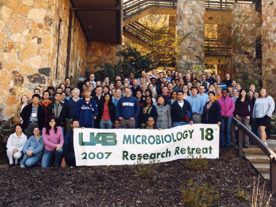2000 Retreat“This included people from multiple UAB schools (Joint Health Sciences, School of Medicine, School of Dentistry, School of Public Health, School of Nursing, College of Arts and Sciences, School of Engineering, and occasionally others) if their graduate students were enrolled in the microbiology graduate training programs,” Chaplin said. “Thus, the retreat provided valuable glue that held the broadly based microbiology community from across UAB together.”