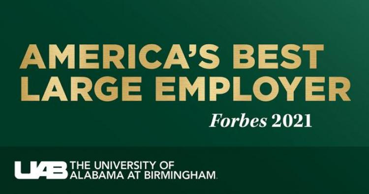 The University of Alabama at Birmingham (UAB) is a research university and academic health center that has - for more than seven decades - produced breakthroughs in education, health care, research, and service. UAB was named America's #1 Best Large Employer by Forbes for 2021, topping the list of more than 500 public and private corporations, hospitals, universities and more, across dozens of industries.