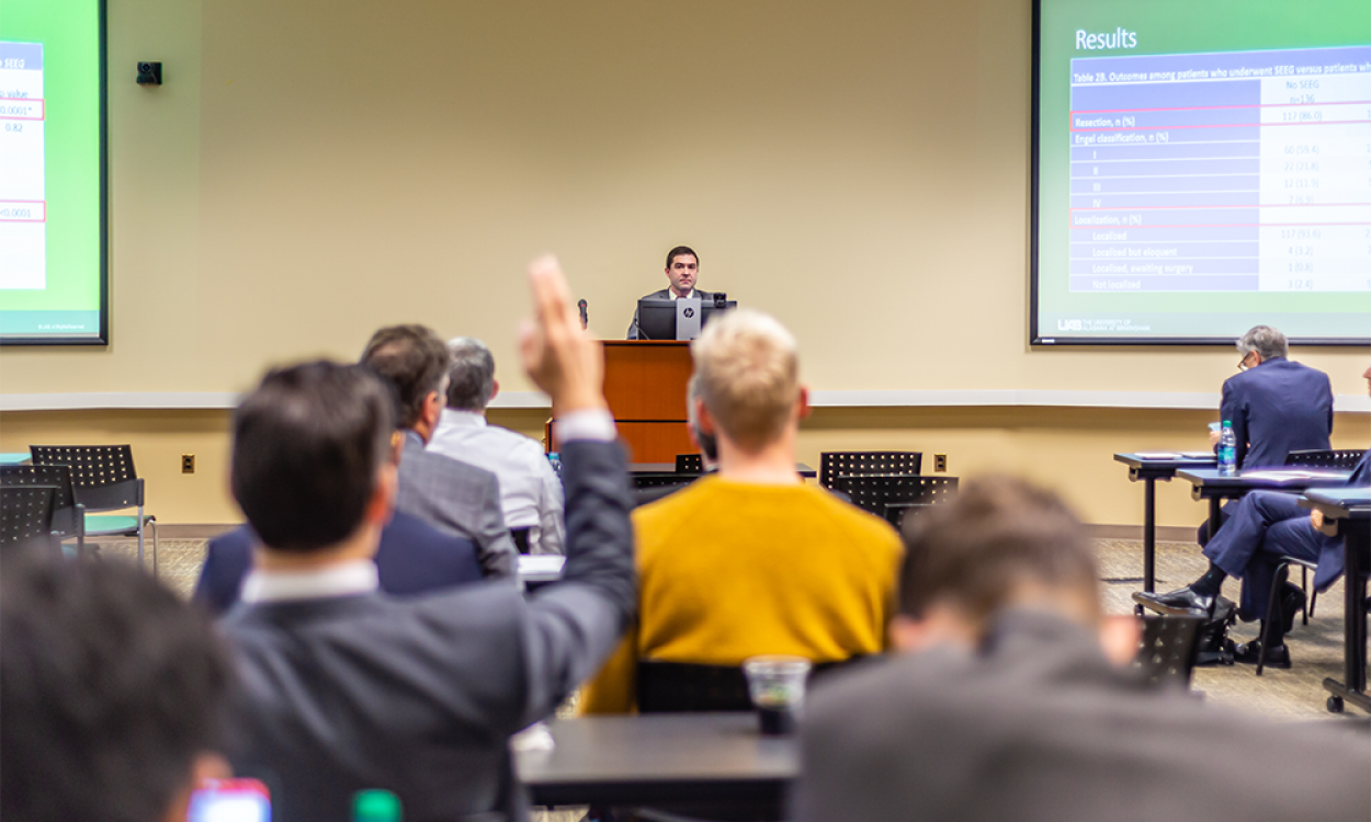 The UAB Department of Neurosurgery held its 36th Annual J. Garber Galbraith, M.D., Scientific Session and Lecture on Nov. 8 in the West Pavilion Conference Center. The Galbraith Lecture is given by a visiting neurosurgeon who has made significant contributions to the field of neurosurgery, while the Galbraith Scientific Session highlights the research and achievements of past and present UAB neurosurgery residents.